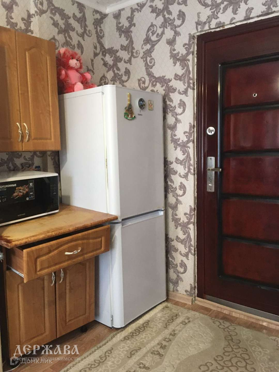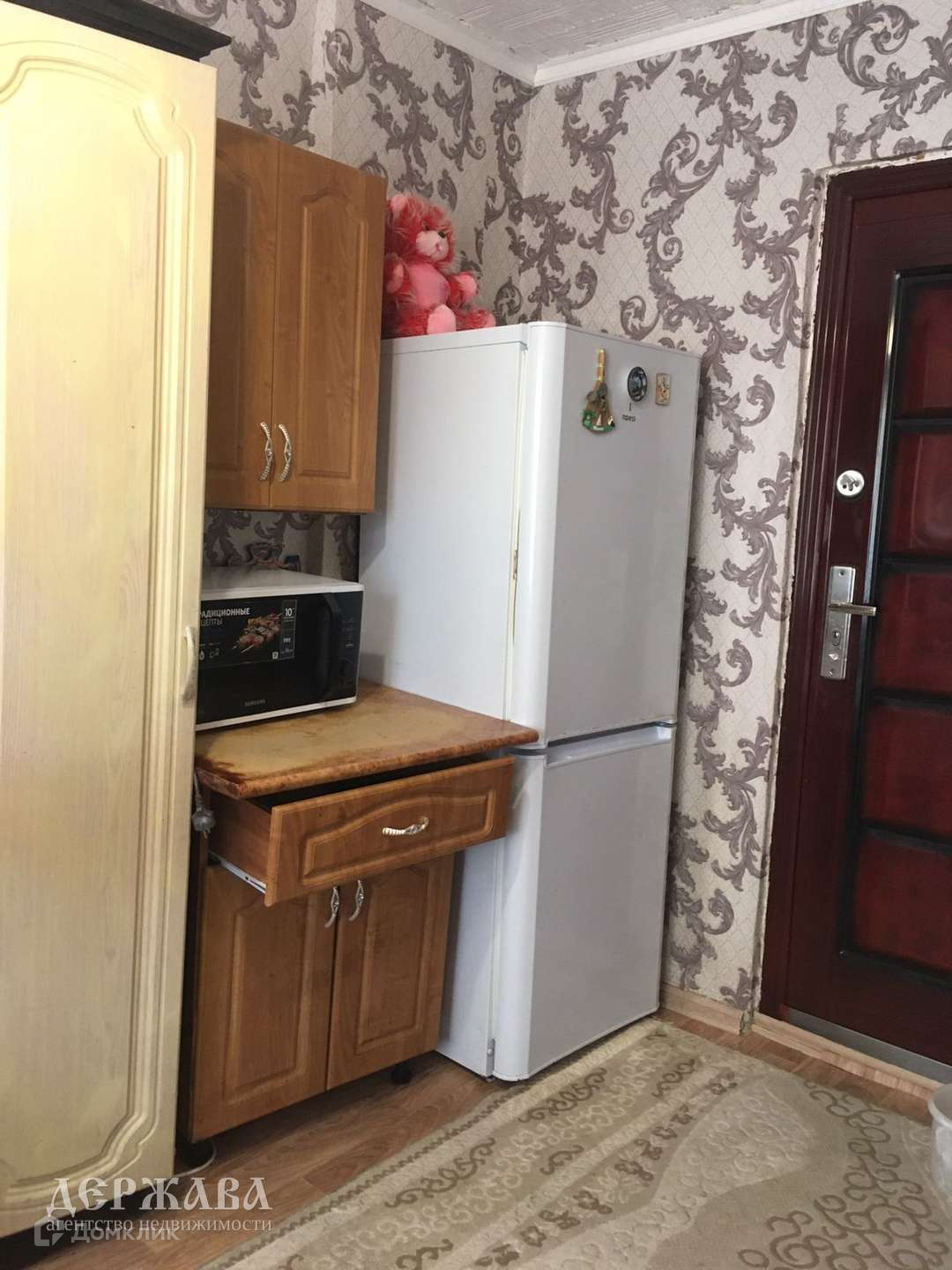 Косметический ремонт: стены оклеены обоями, покрытие пола - линолеум, потолочная плитка, окно - ПВХ, туалетная и ванная комнаты совместного пользования на этаже. Имеется личная тех.кладовая для стиральной машины.