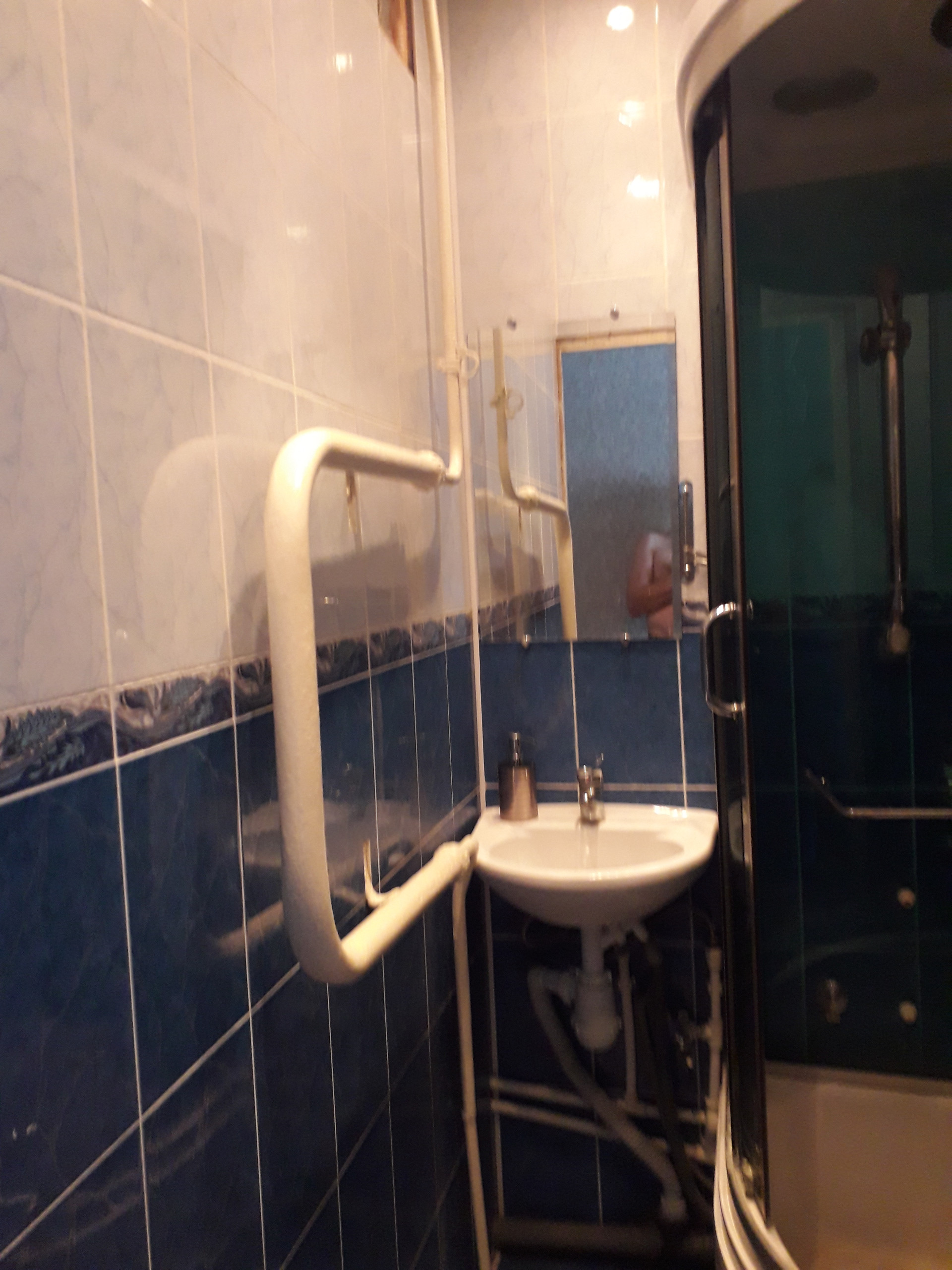 С/у плитка до потолка, подшивной потолок. В ванной душевая кабина.