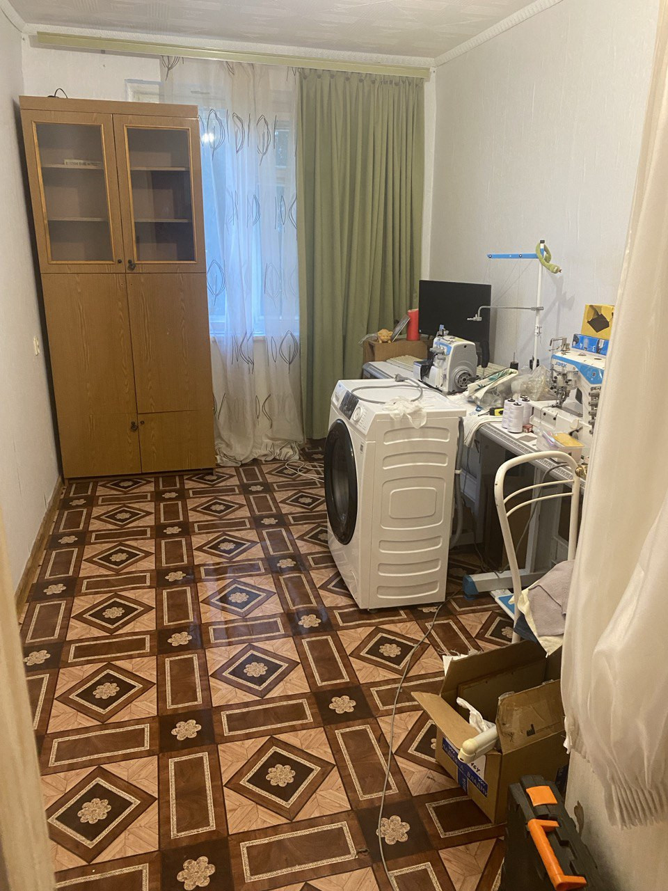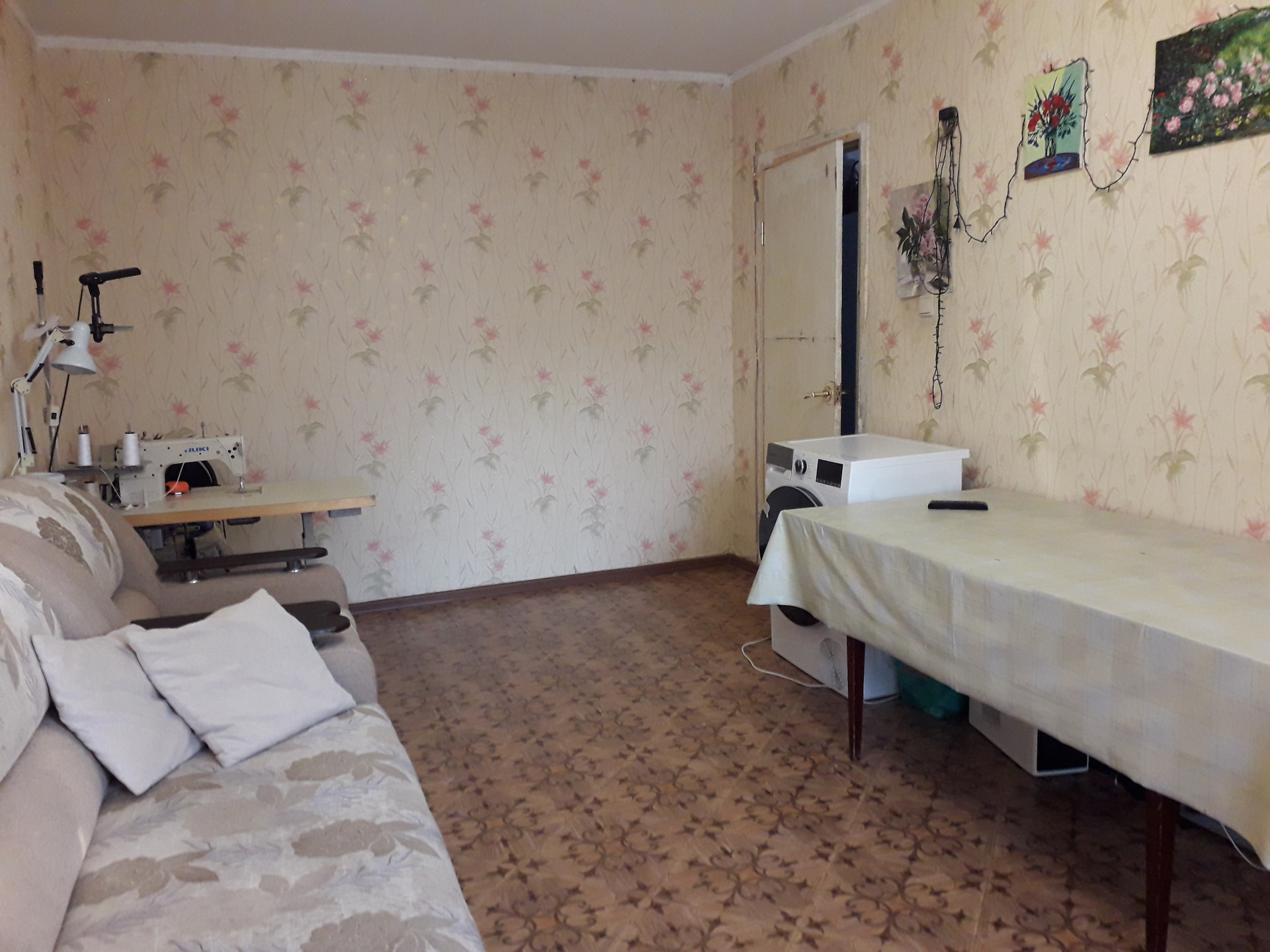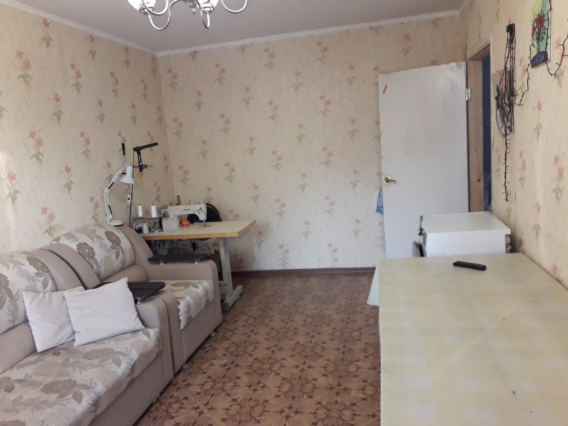 Пол линолеум комнаты и кухня, ламинат прихожая.