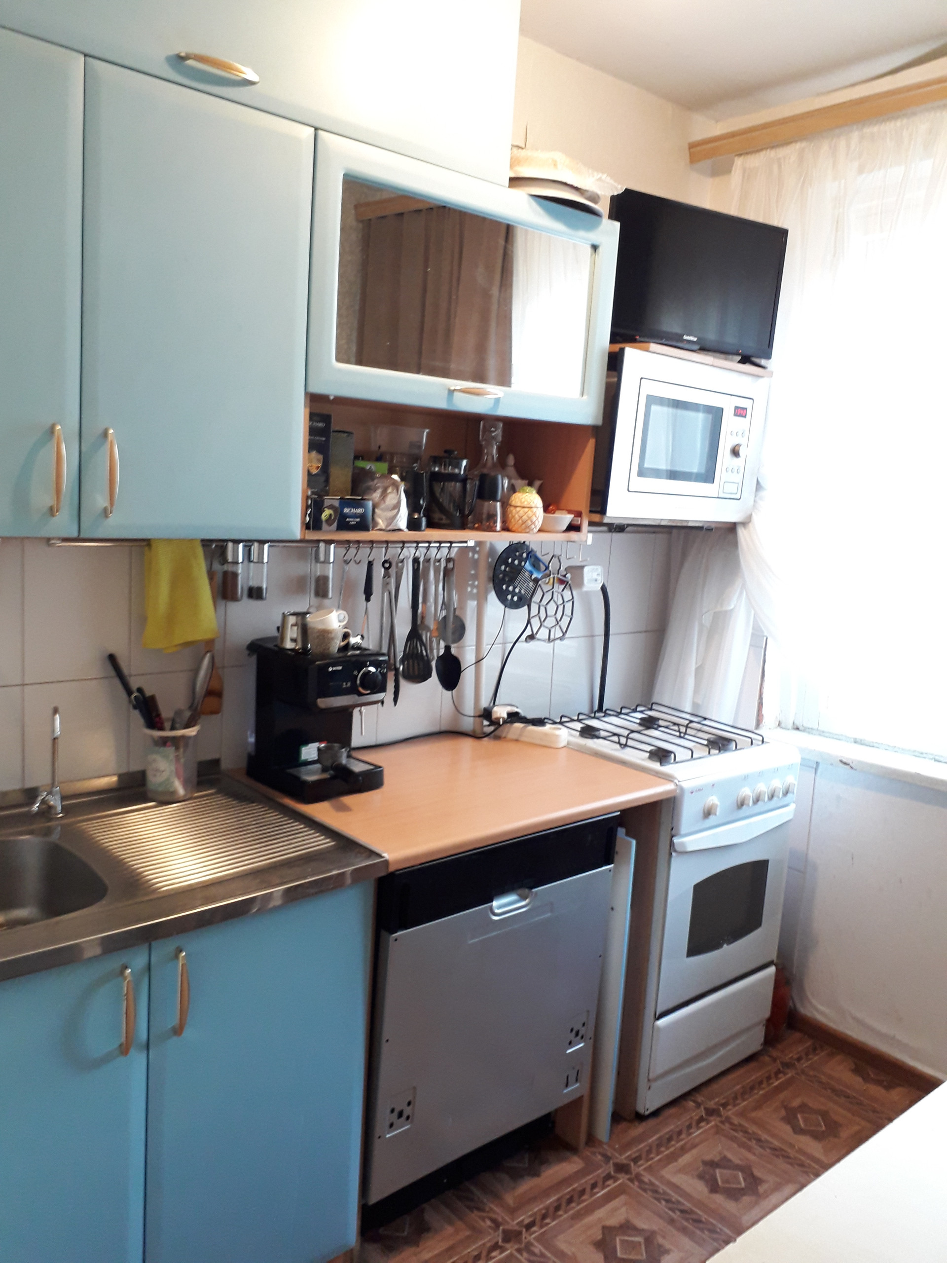 Мебель на фото остается, из техники остается только газовая плита.