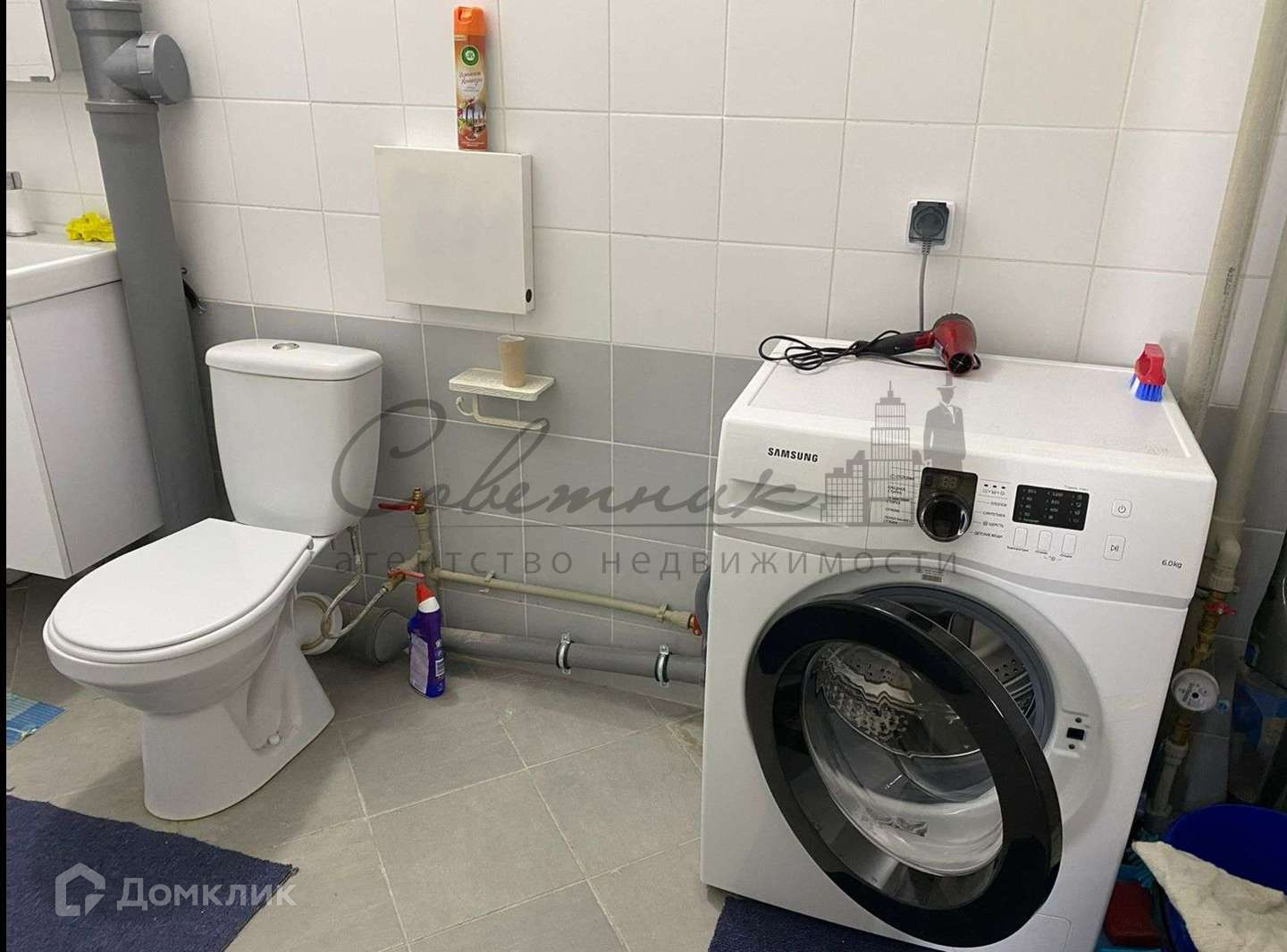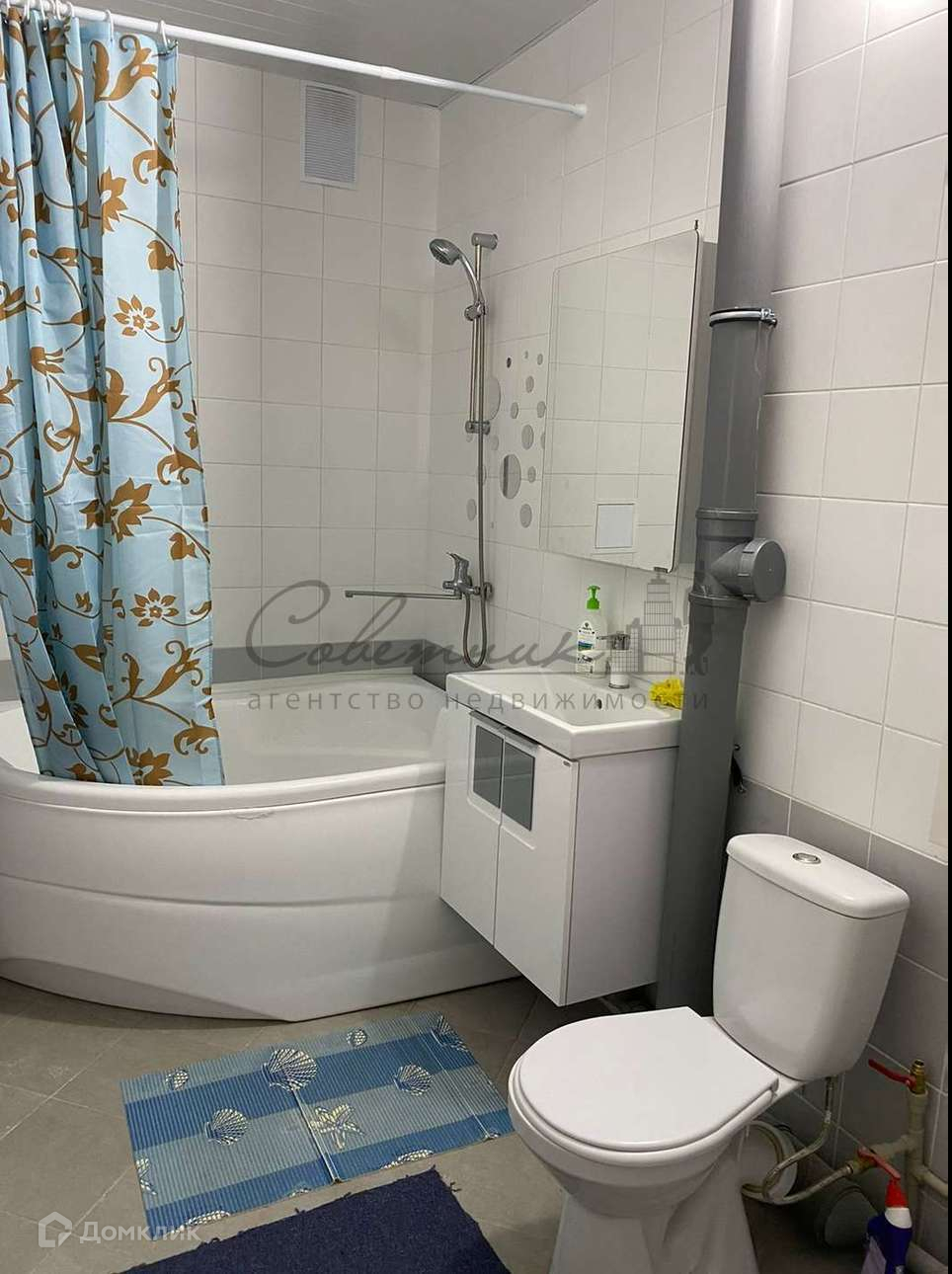 - санузел совмещенный ,кафель до потолка .