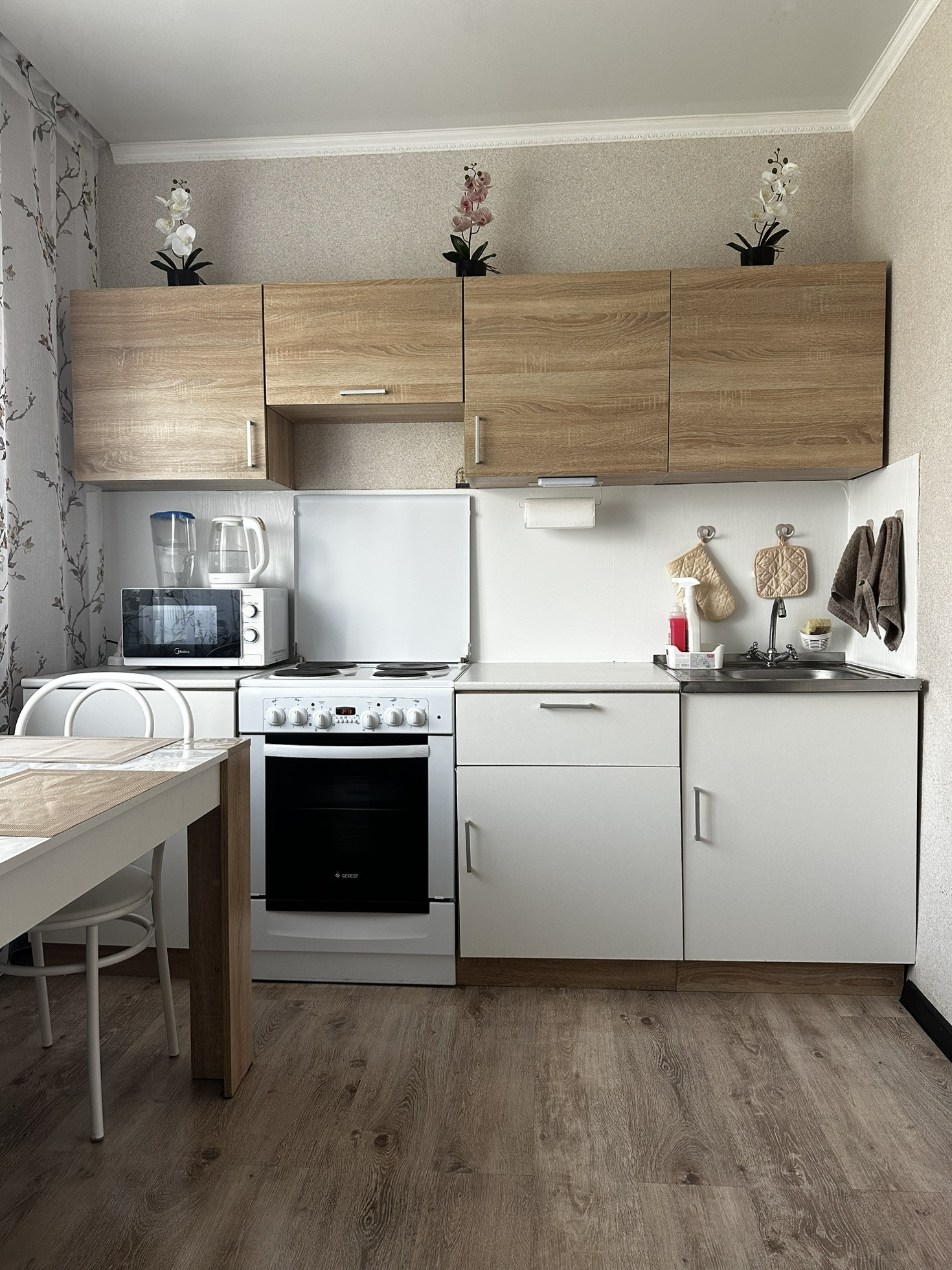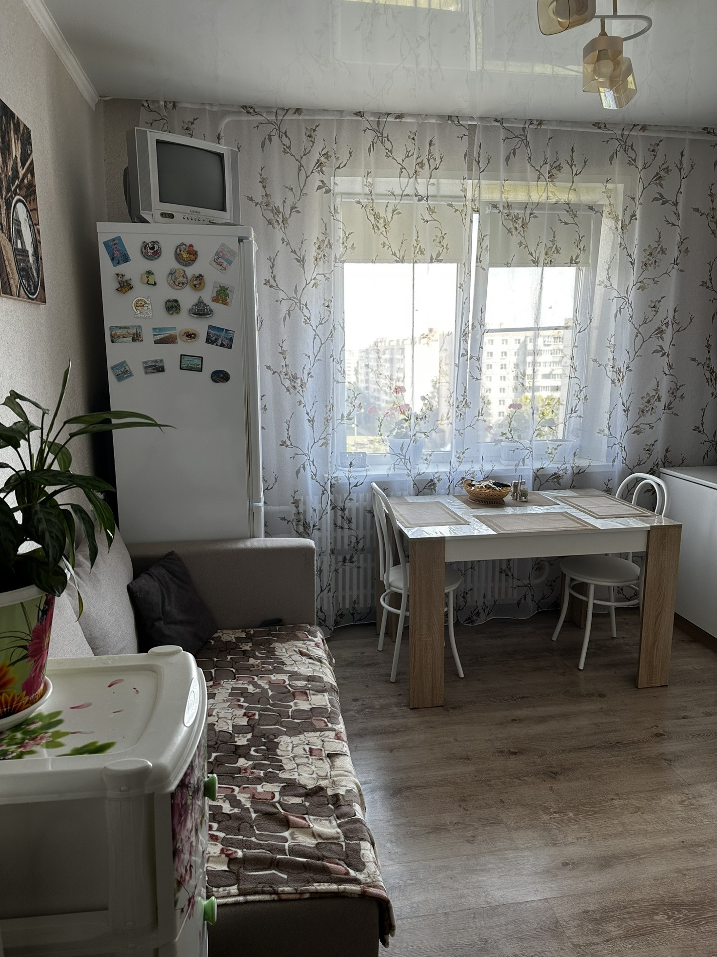 В квартире сделан капитальный ремонт, новая проводка, заменялись трубы и вся сантехника, современный косметический ремонт: натяжные потолки, ламинат, окна пвх, балкон застеклен. Из мебели в квартире остаются: кондиционер, кухонный гарнитур, обеденная группа, шкаф в прихожей.