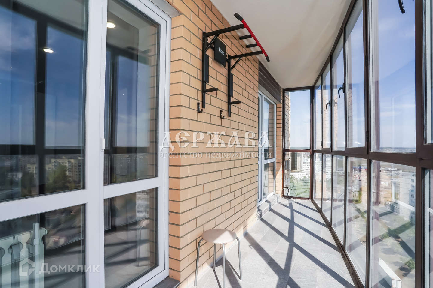 Расположение квартиры и панорамное остекление балкона обеспечивает прекрасный вид на город. Площадь балкона 7,8 кв.м., имеет выход из комнаты и из кухни.