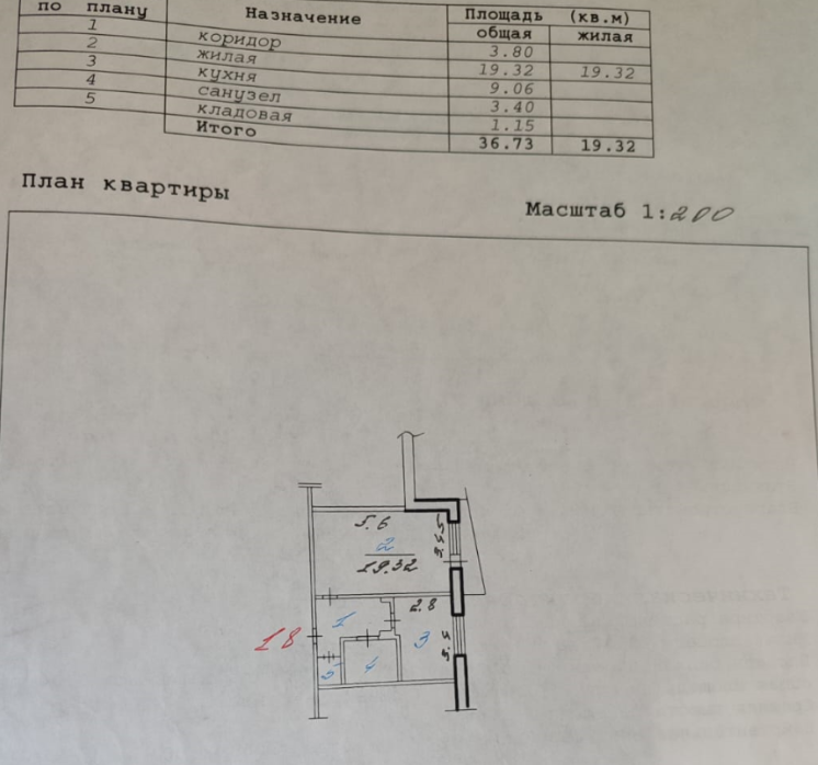 Общая площадь 37 м2