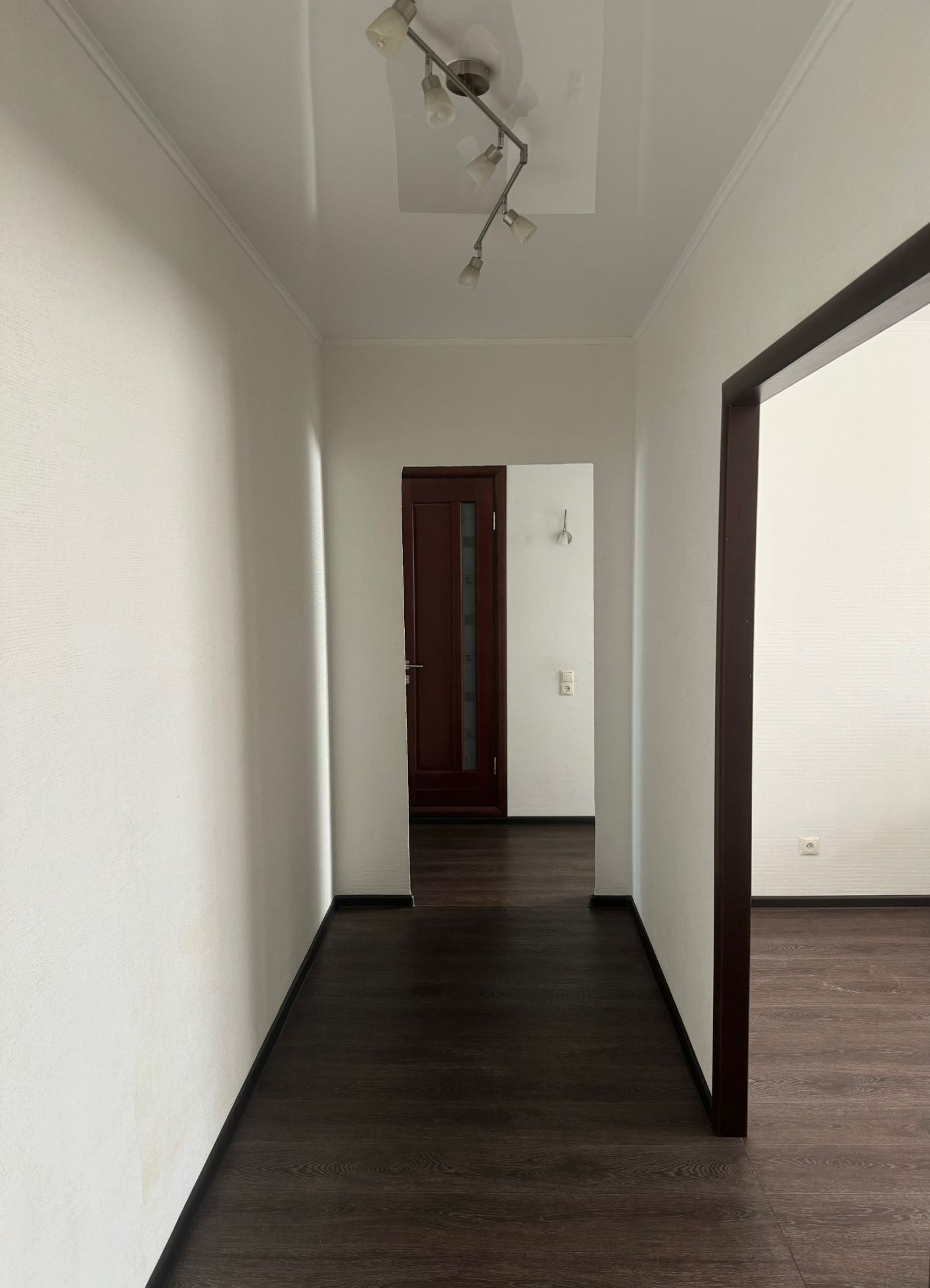 - В гостиной: стенка-горка Ангстрем, телевизор Samsung 40”, угловой диван из экокожи, стеклянный журнальный столик.