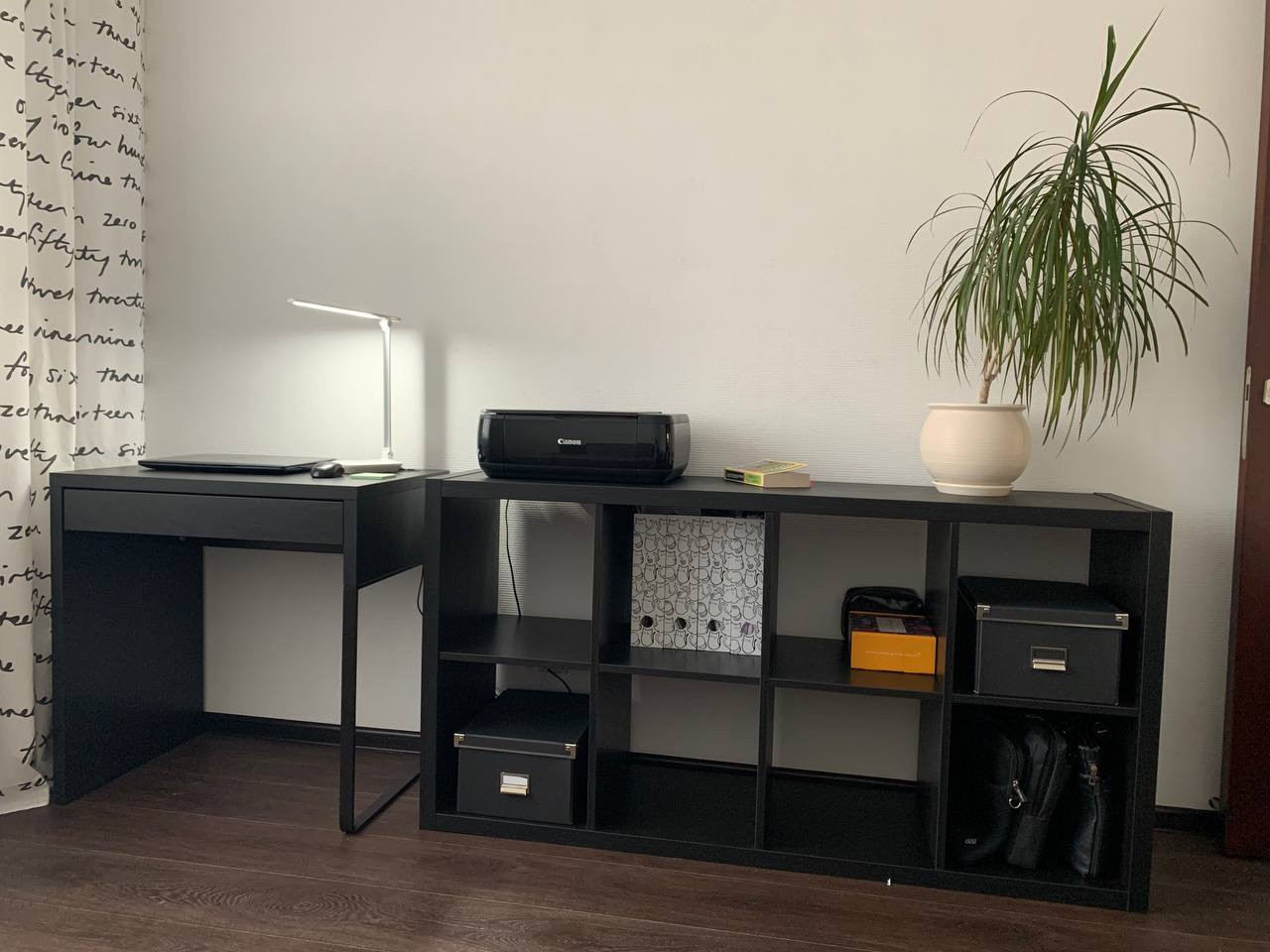 - В третьей комнате: диван, стеллаж и письменный стол.