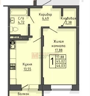 Общая площадь 45.9 м2