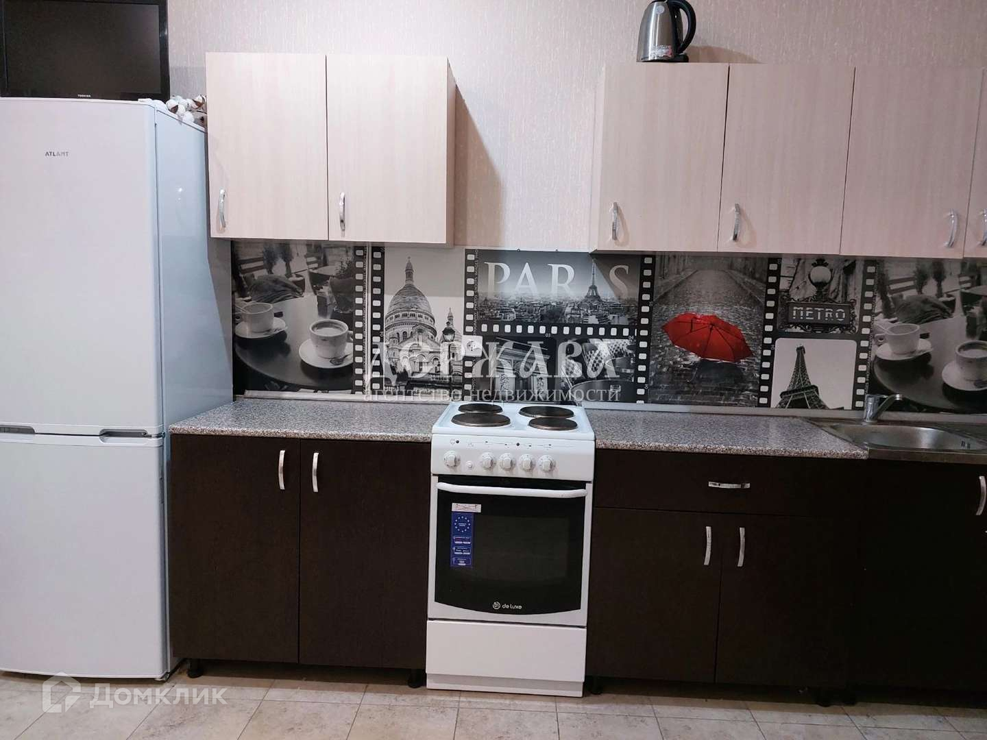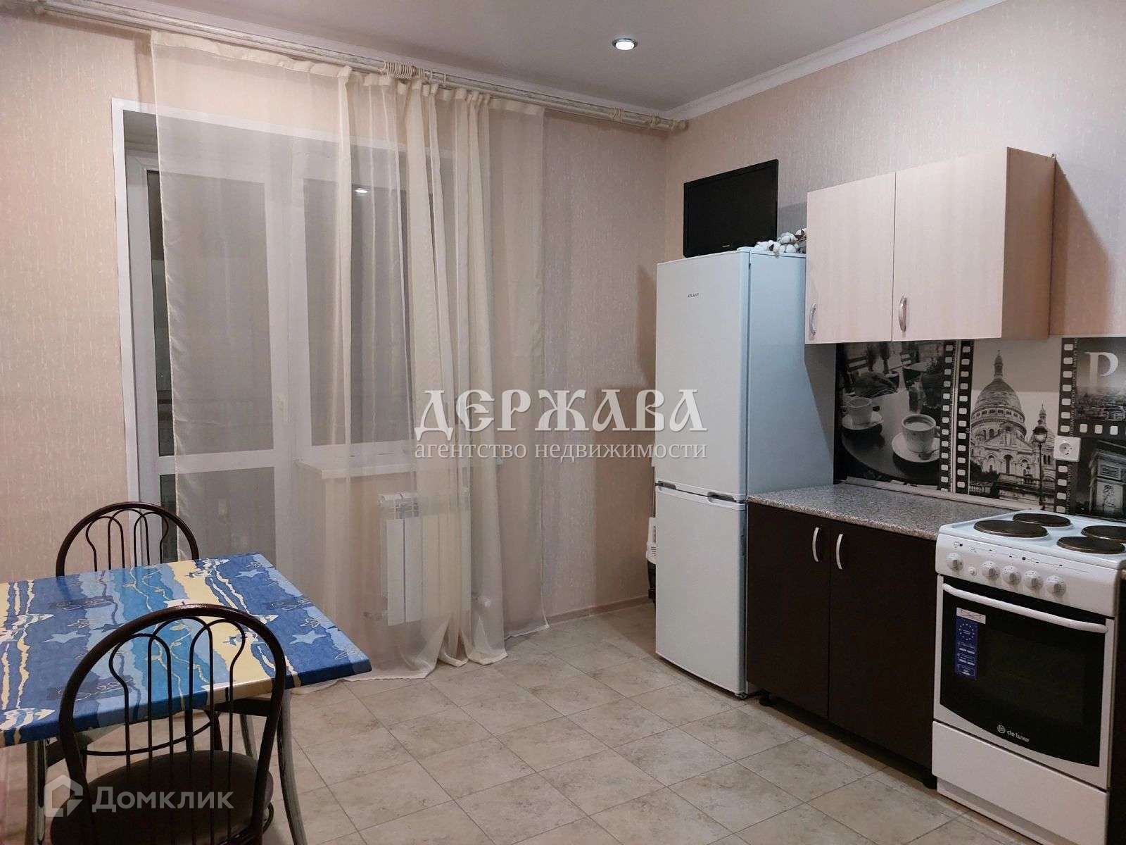 Укомплектована мебелью и техникой: кондиционер, холодильник, телевизор, кухонный гарнитур, плита, диван, шкаф, стол, стулья.
