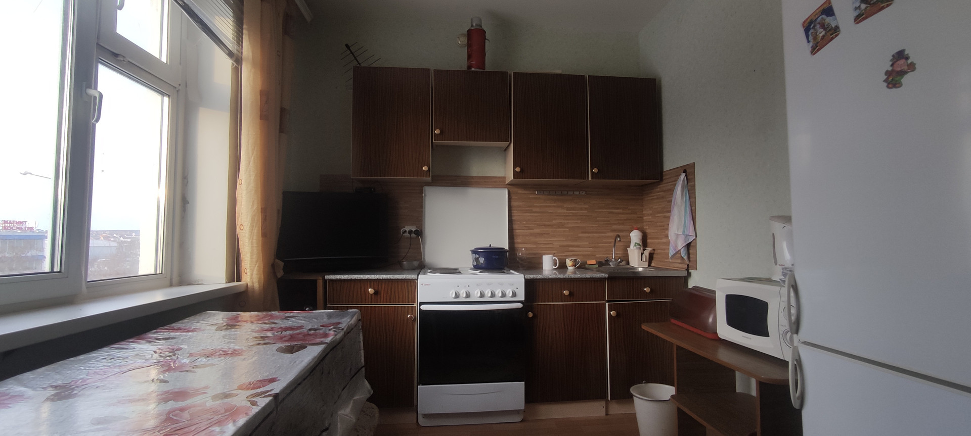 В квартире есть из бытовой техники 2 телевизора с приставками, стиральная машинка,  кухонная плита, фен, микроволновая печь, электрический чайник, роутер для    wi fi.