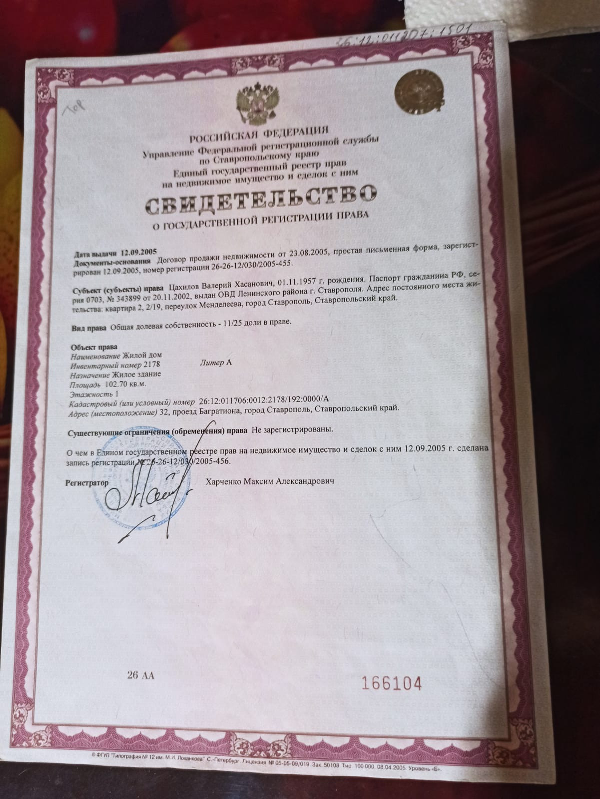 Площадь участка 4 сот.