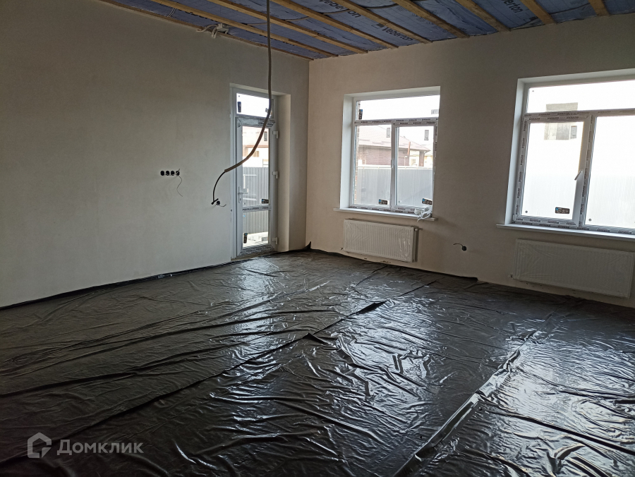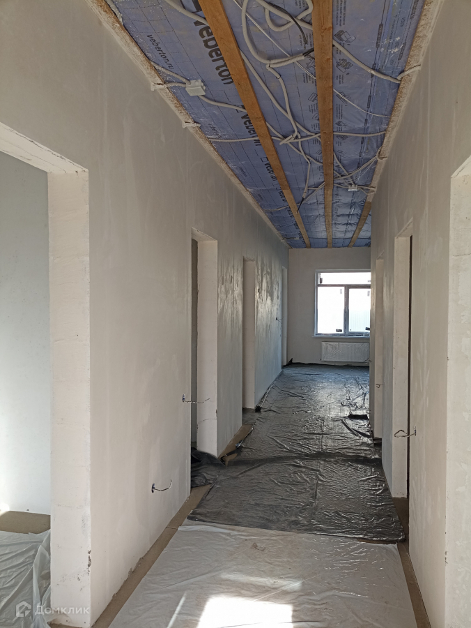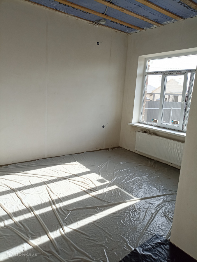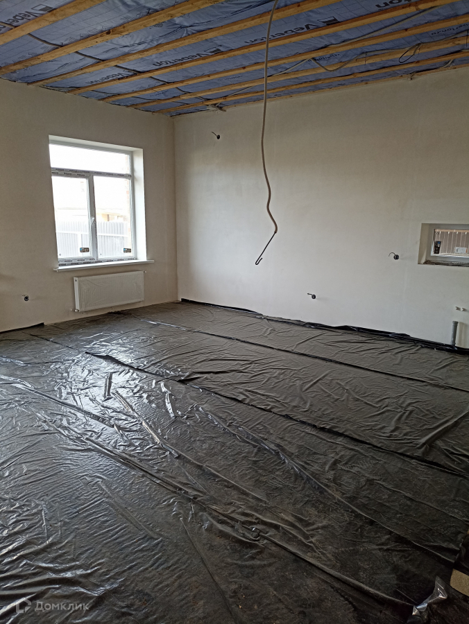 В доме выполнена предчистовая отделка по маякам.