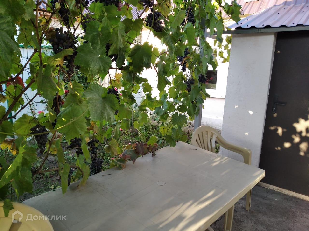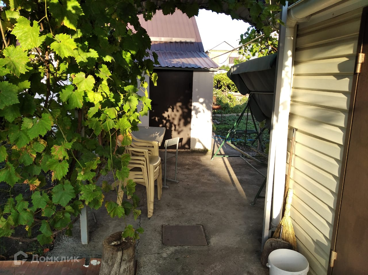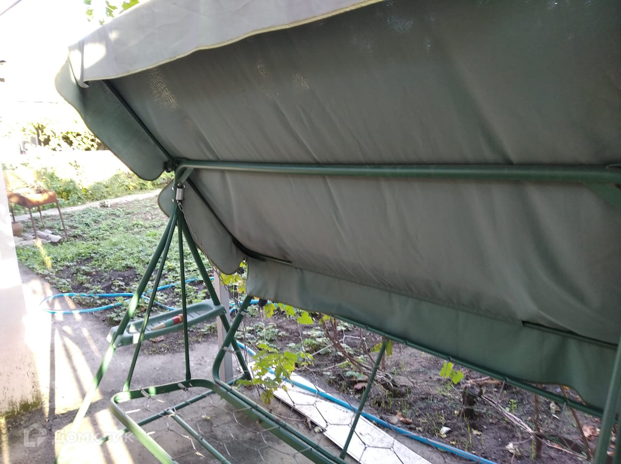 На участке есть летняя кухня, заед для автомобиля, зона отдыха.