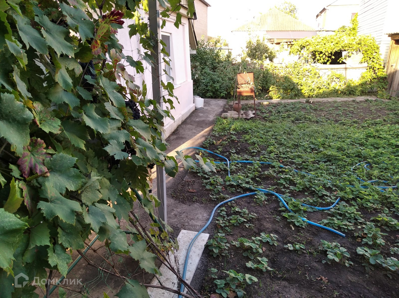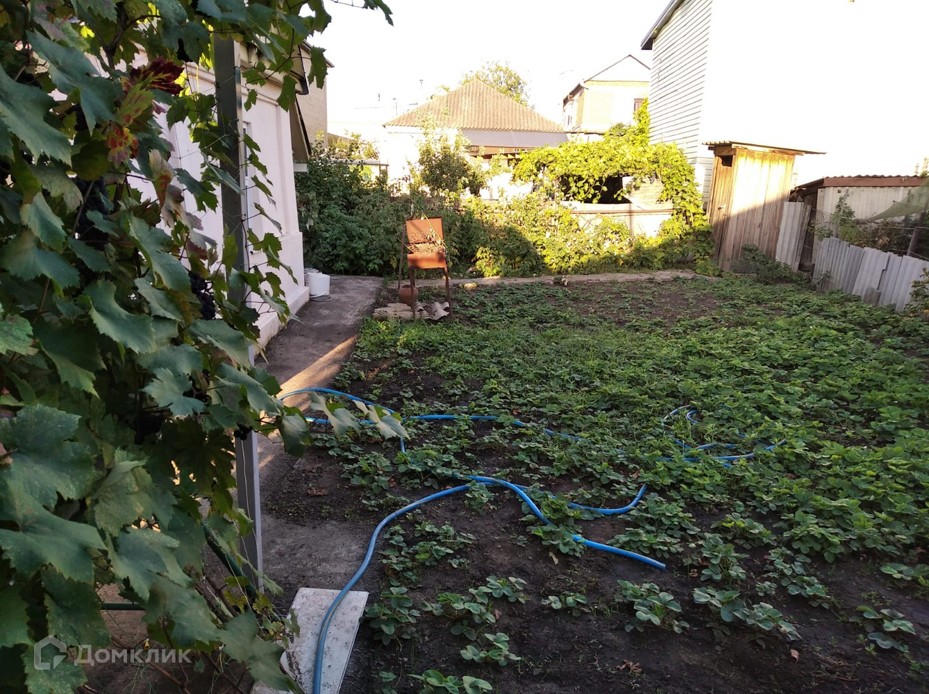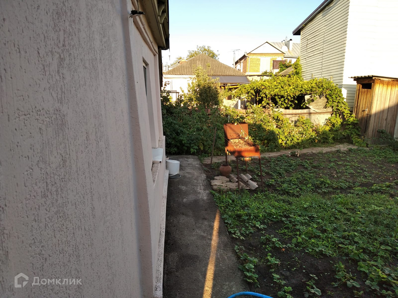 На участке есть летняя кухня, заед для автомобиля, зона отдыха.
