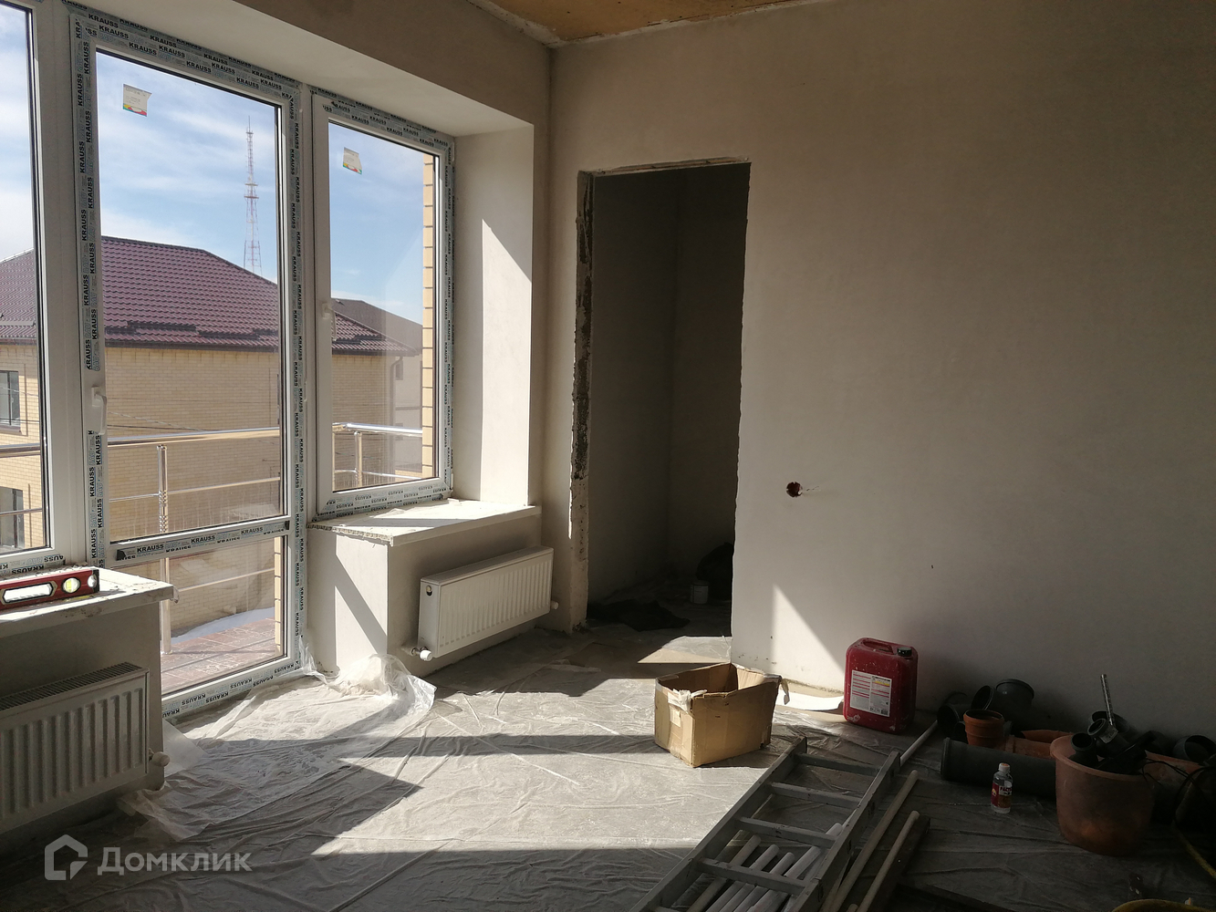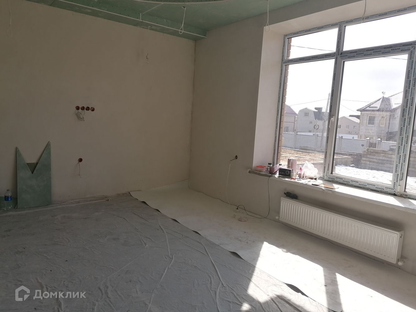 ОПИСАНИЕ: Стяжка-штукатурка. Общая площадь - 150 кв, четыре изолированные комнаты, кухня - 18 кв, гардеробная, кладовка, 2-ва сан.узела, балкон, система видео наблюдения, разводка под кондиционеры, теплый пол на первом этаже.