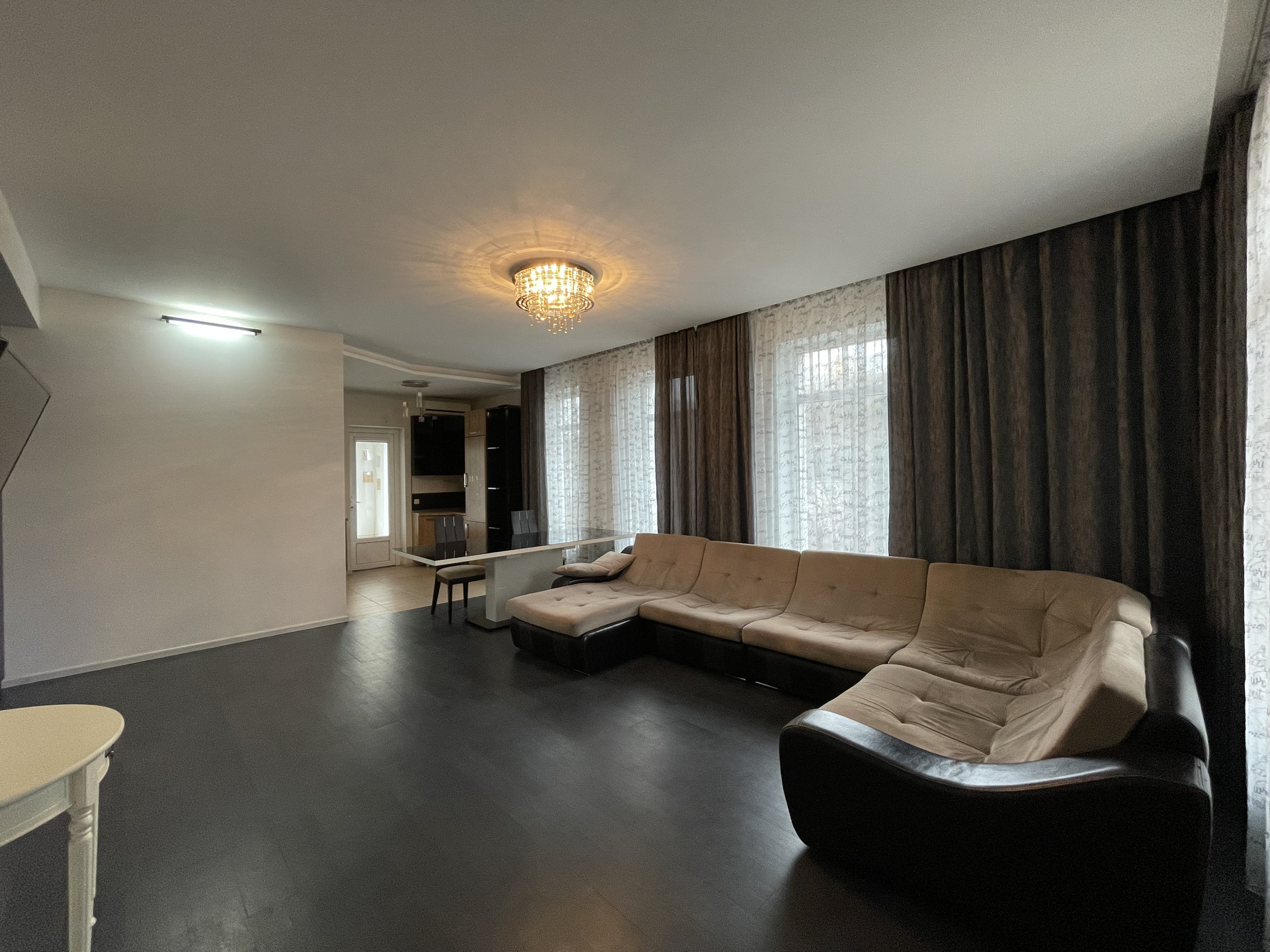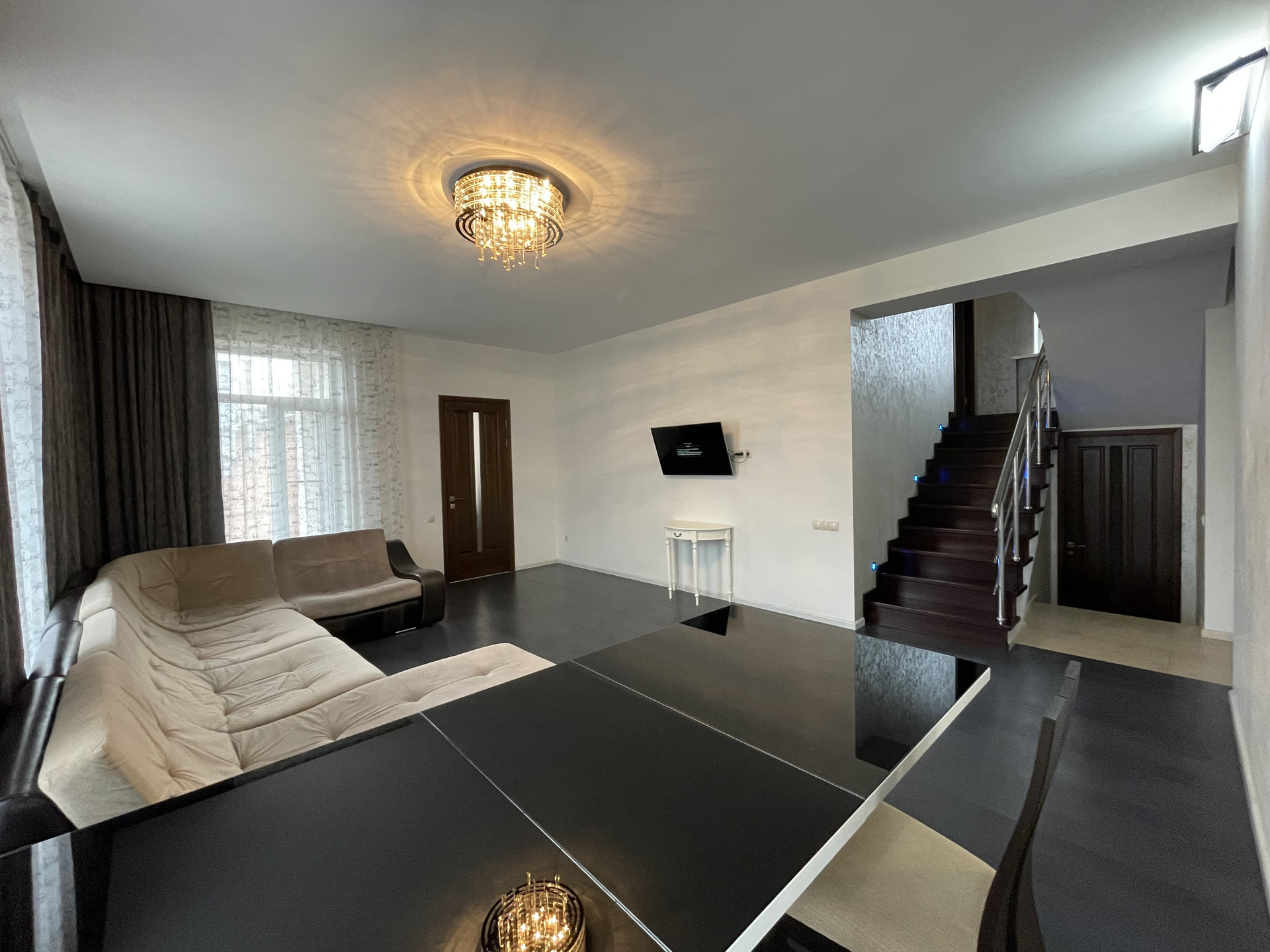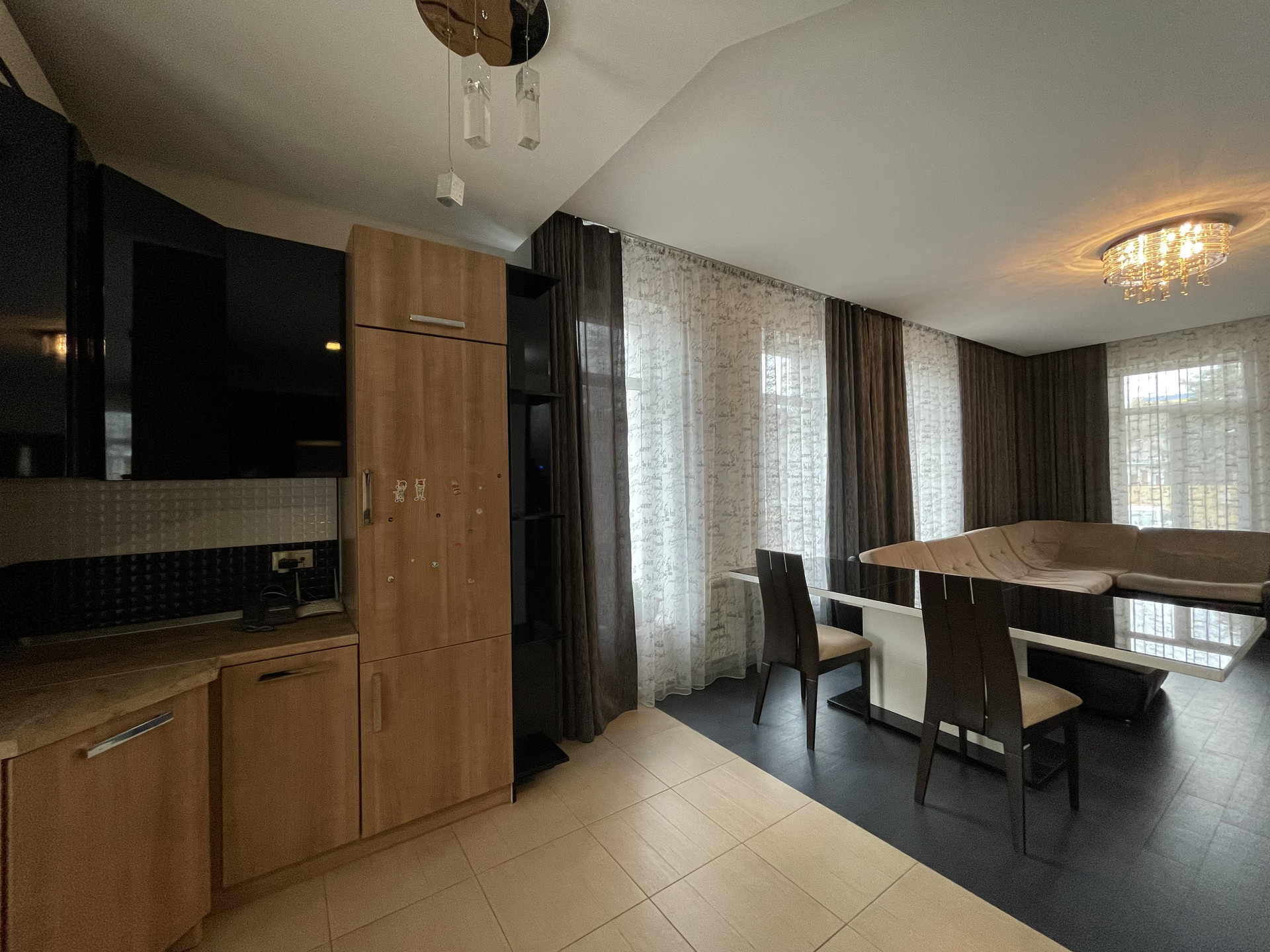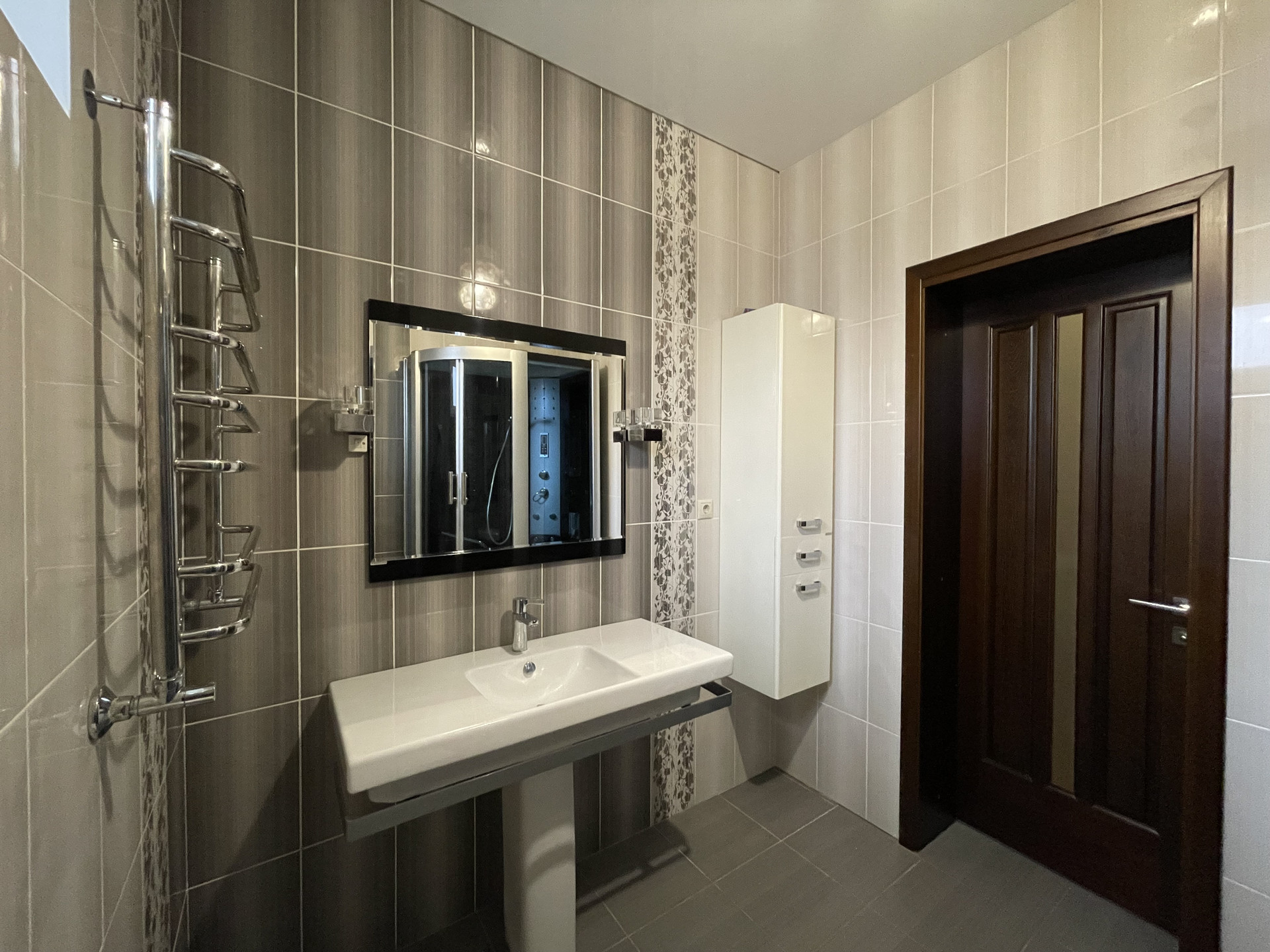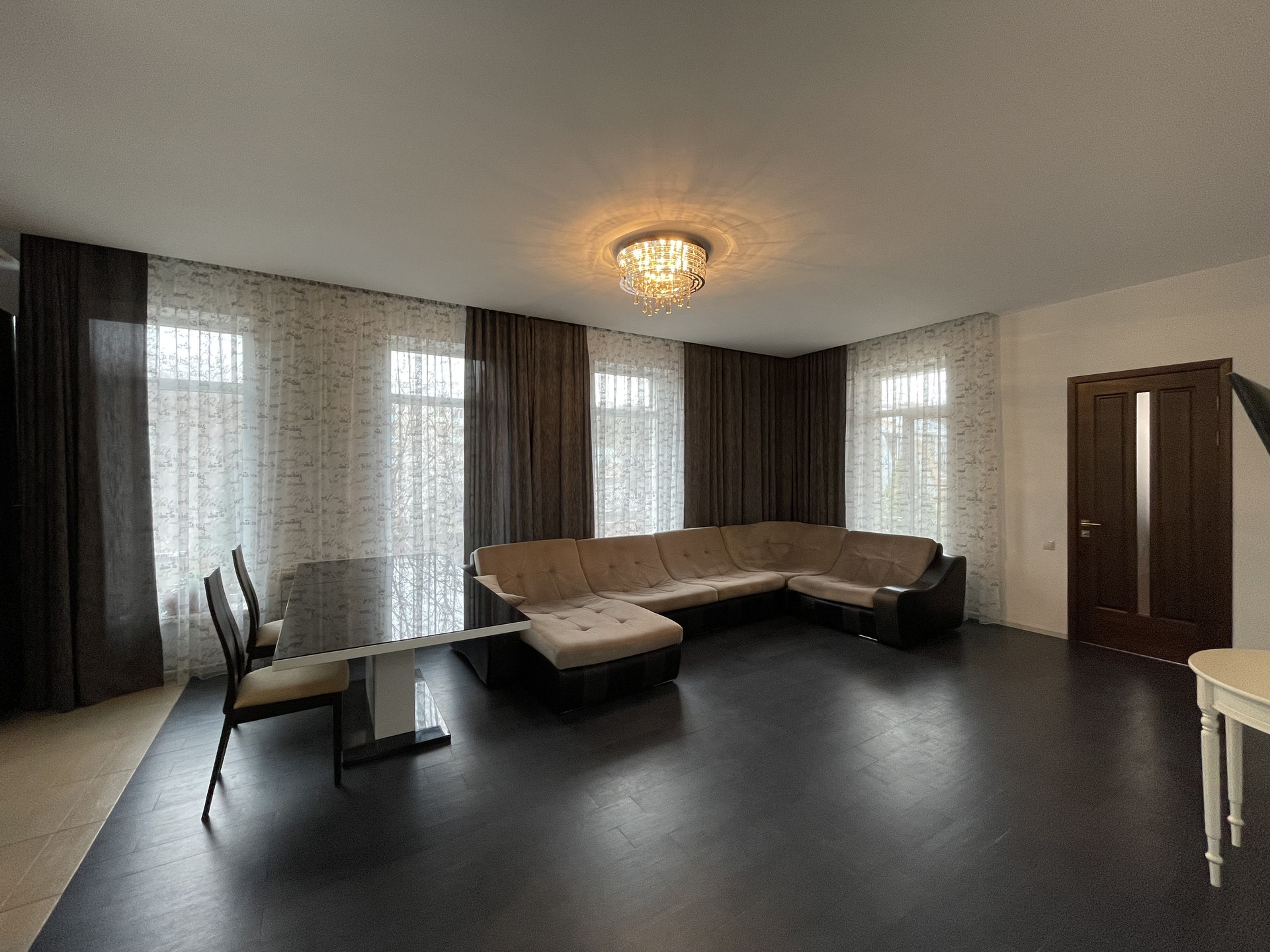 Дорогой ремонт: керамогранит, паркетная доска, двери дерево массив.