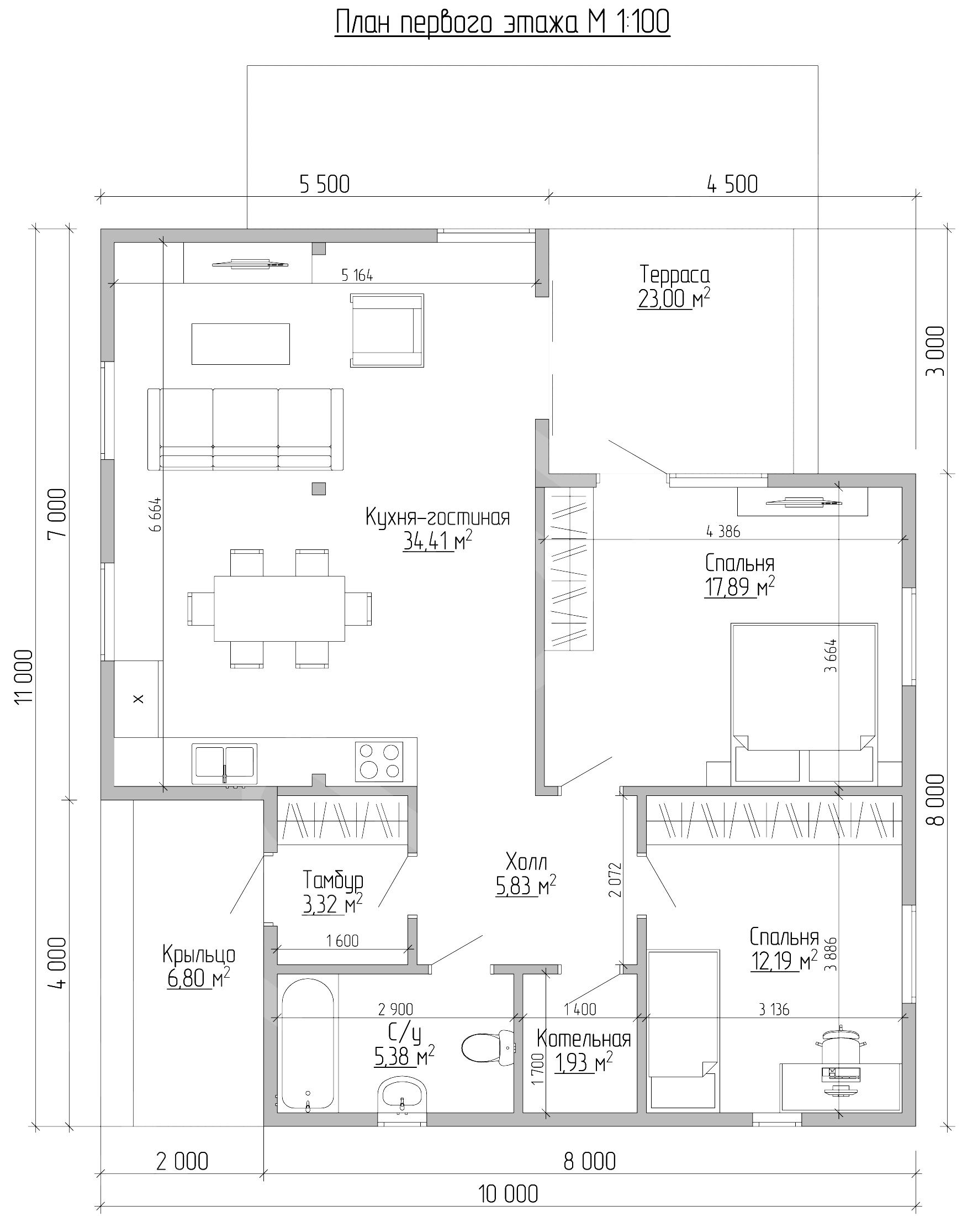 - Общая площадь: 88м2+терраса