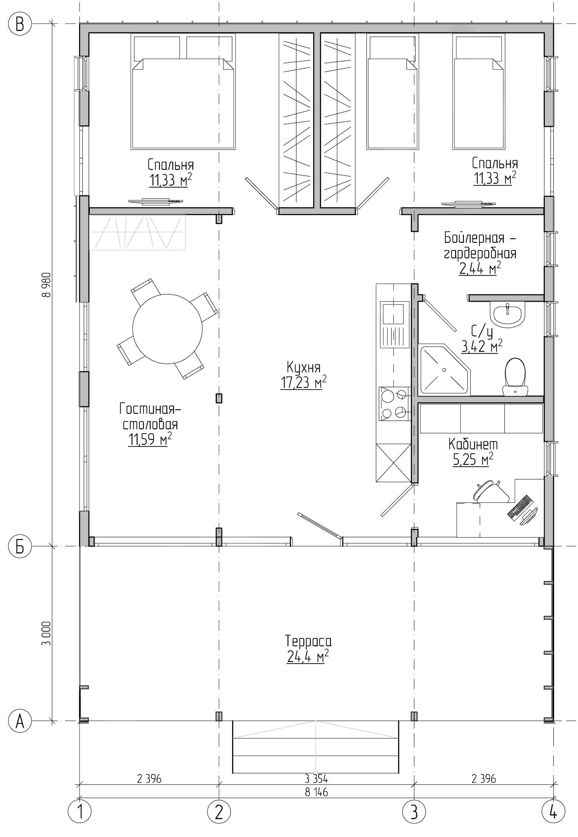 - Общая площадь: 64м2+терраса