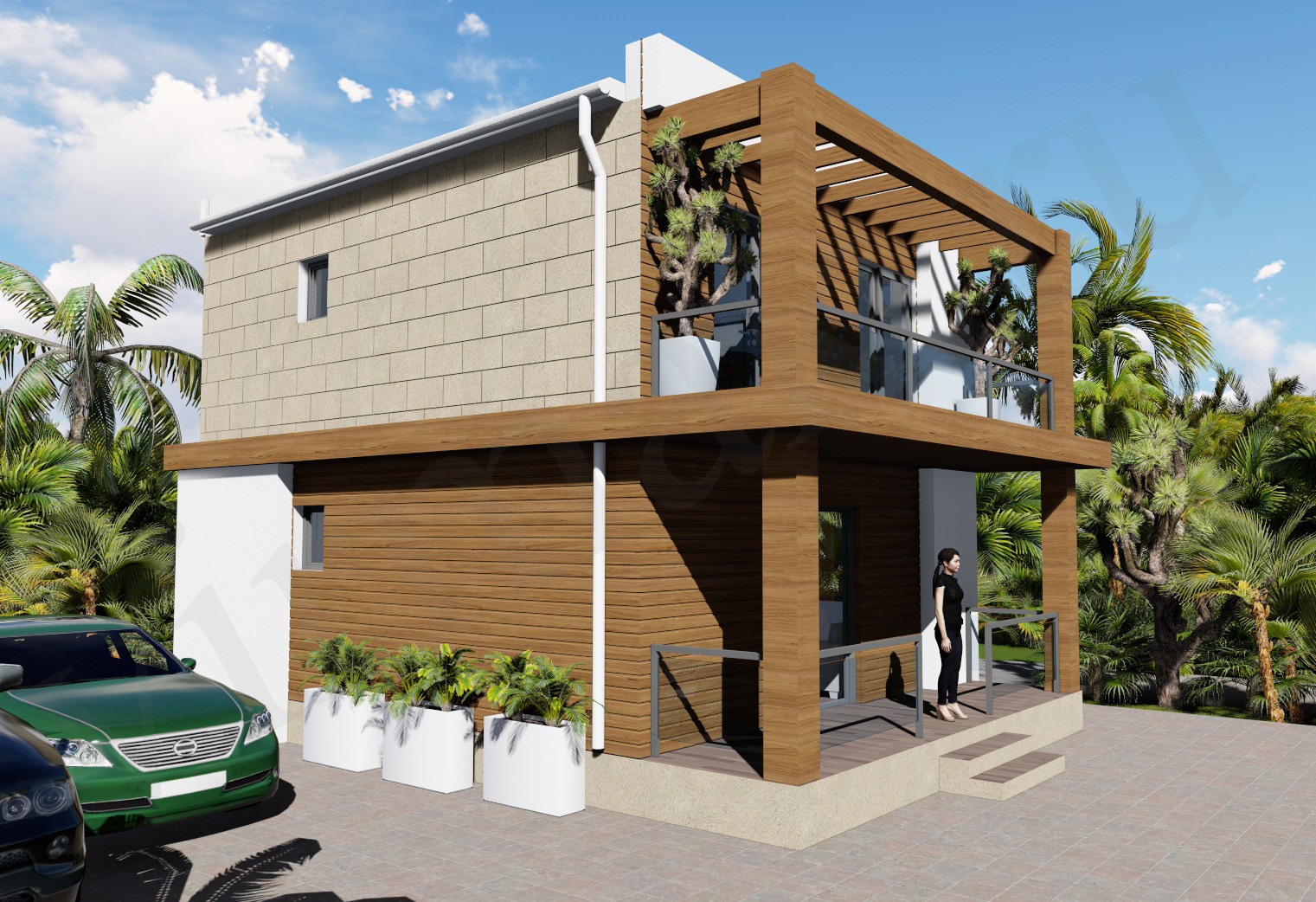 Материалы: Декоративная штукатурка, Планкен, Фасадные термопанели, Фиброцементная плита, Металлический сайдинг (Корея), клинкерный кирпич и многое другое