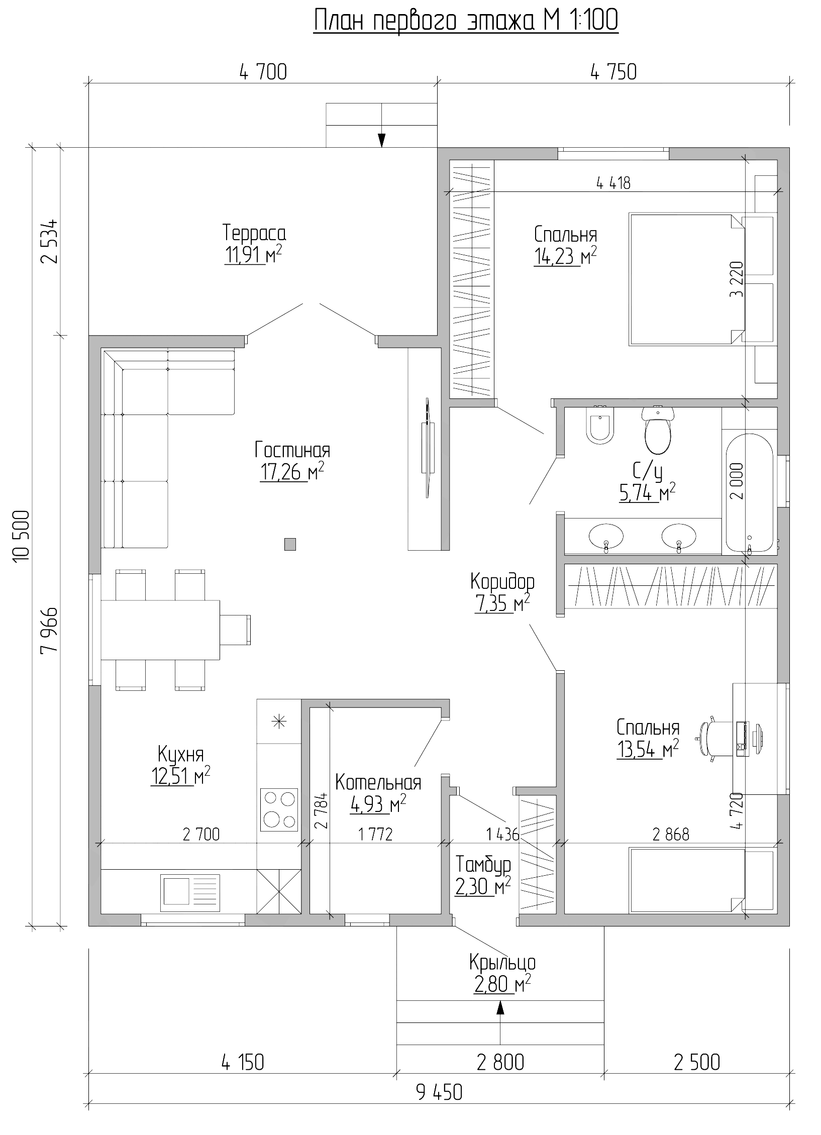 - Общая площадь: 81м2+терраса