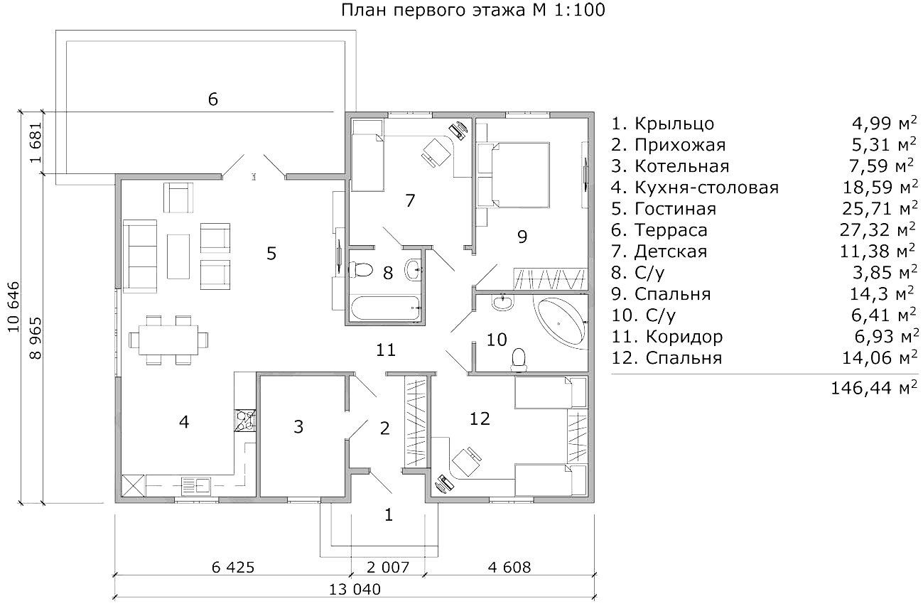 - Общая площадь: 129м2+терраса