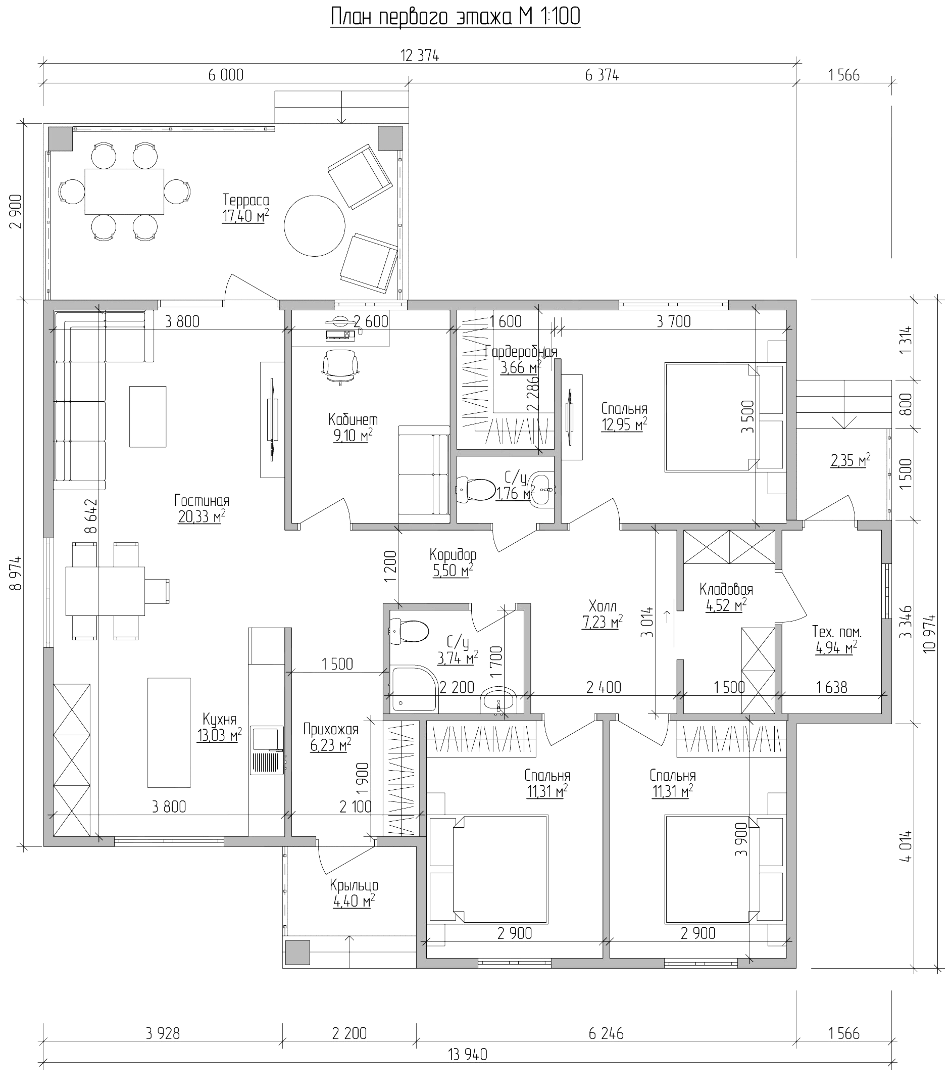 - Общая площадь: 129м2+терраса