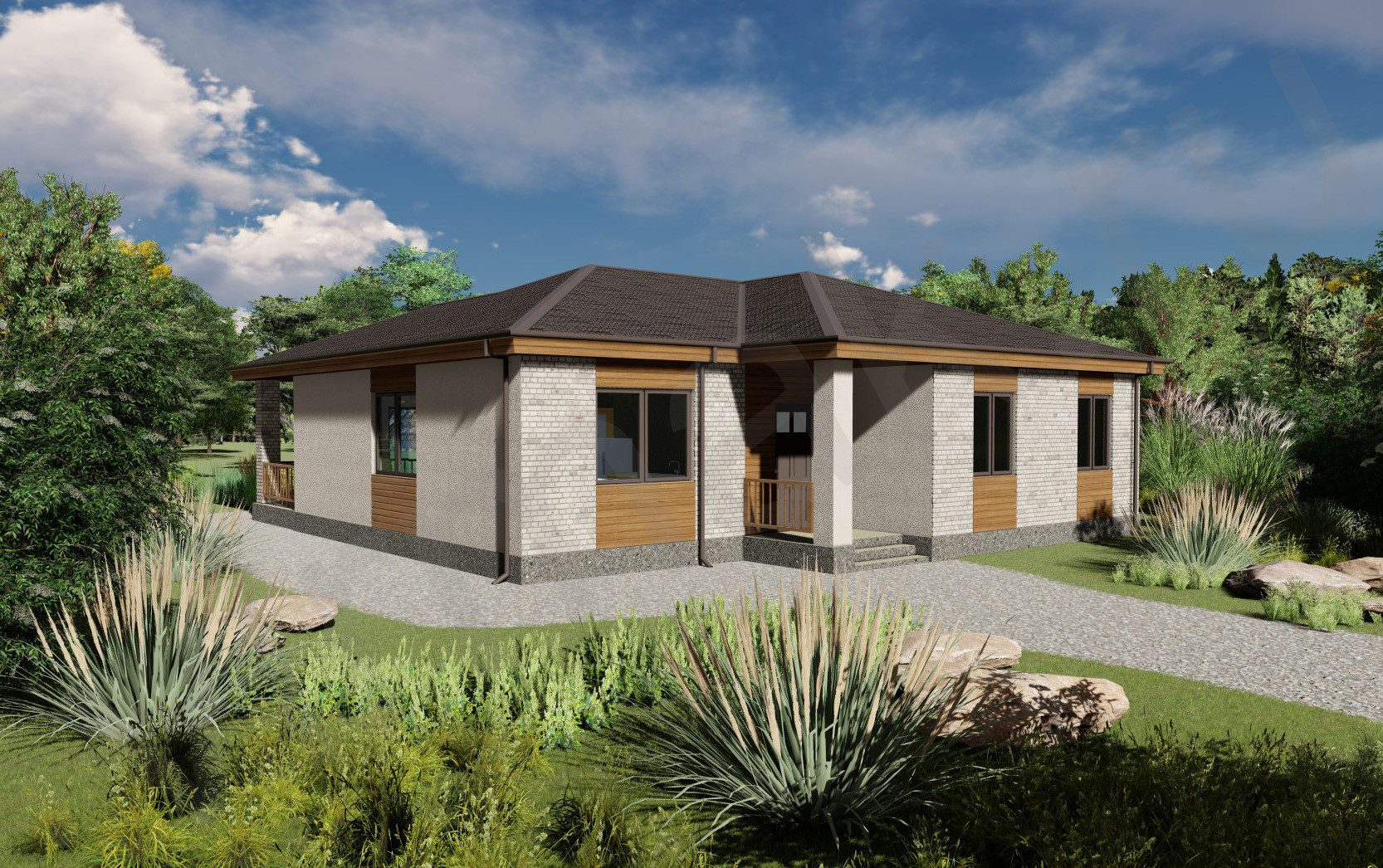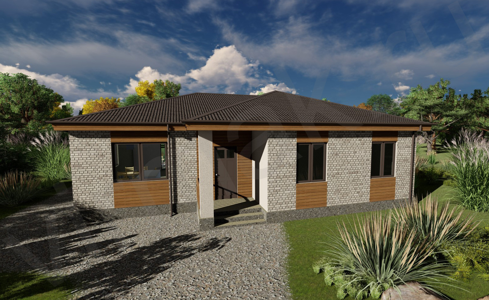 Материалы: Декоративная штукатурка, Планкен, Фасадные термопанели, Фиброцементная плита, Металлический сайдинг (Корея), клинкерный кирпич и многое другое