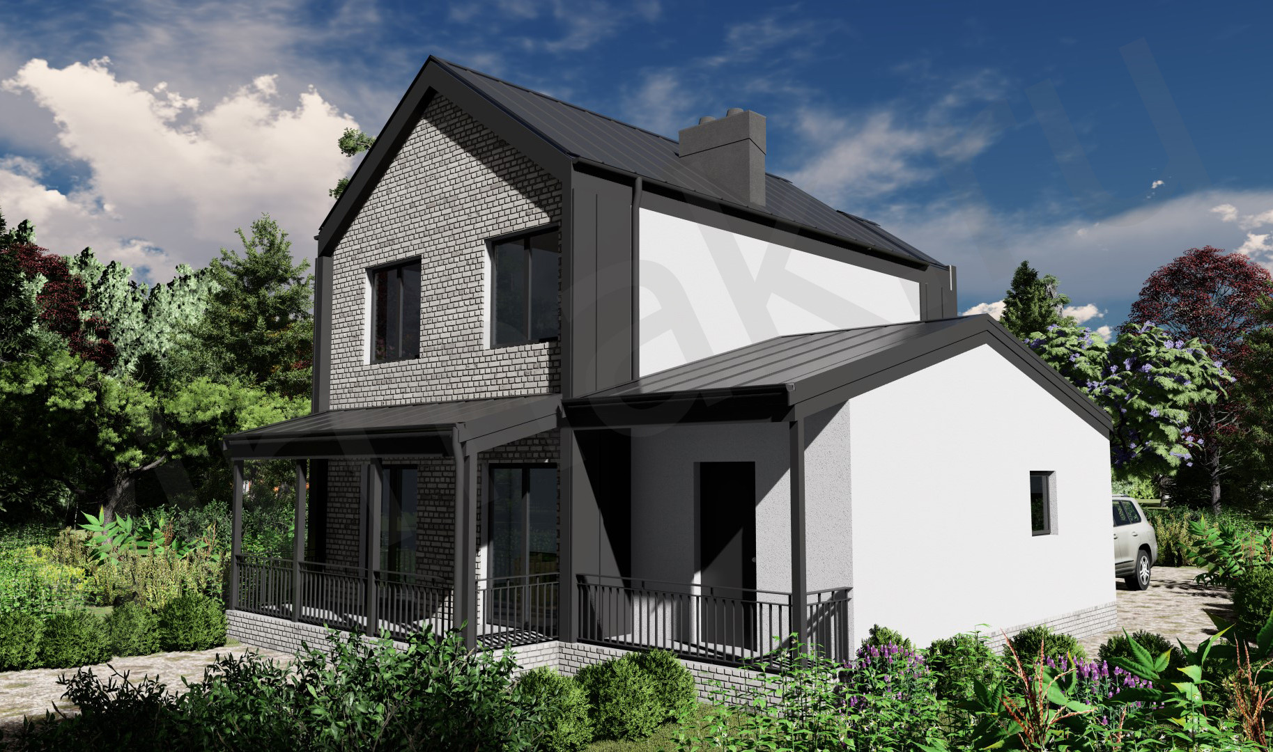 Материалы: Декоративная штукатурка, Планкен, Фасадные термопанели, Фиброцементная плита, Металлический сайдинг (Корея), клинкерный кирпич и многое другое