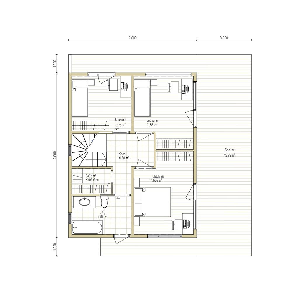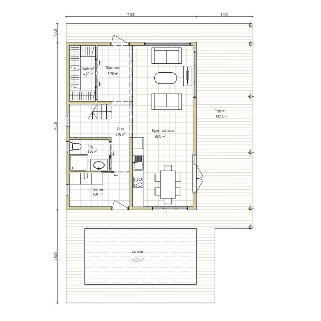 - Общая площадь: 105м2+терраса