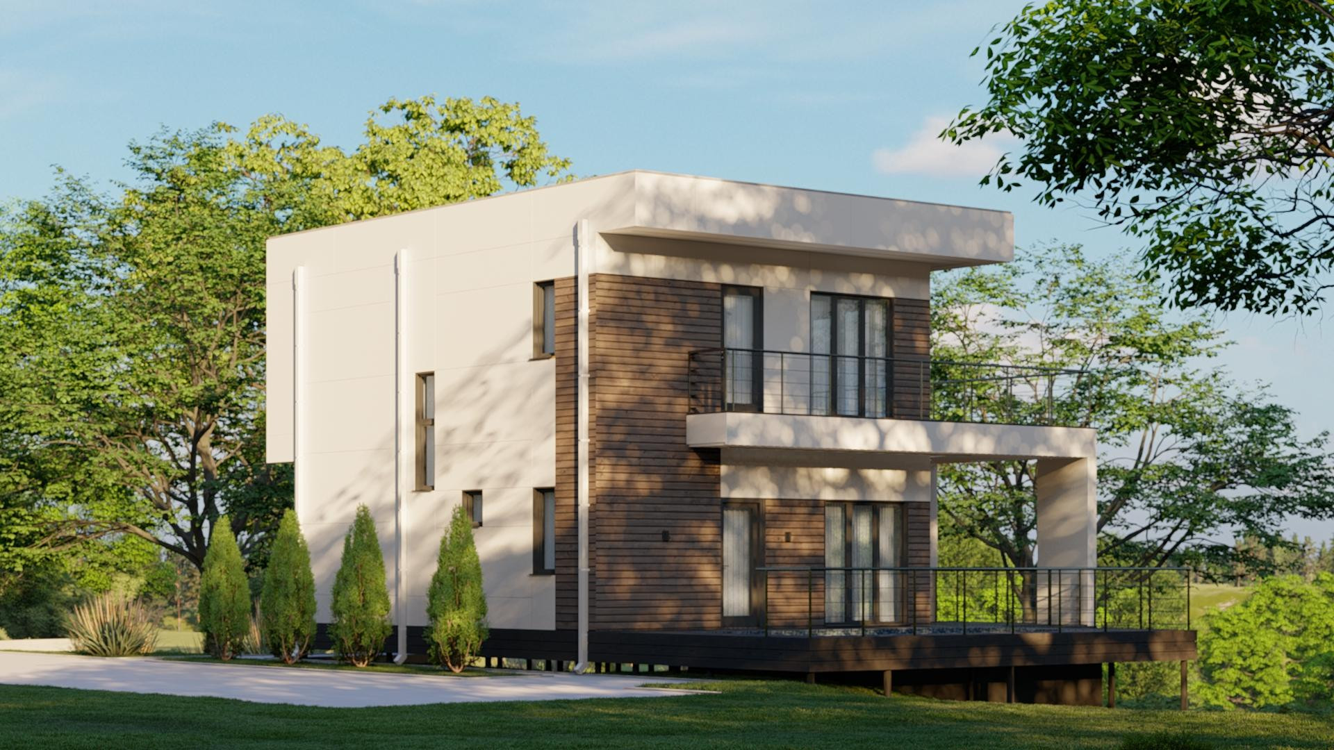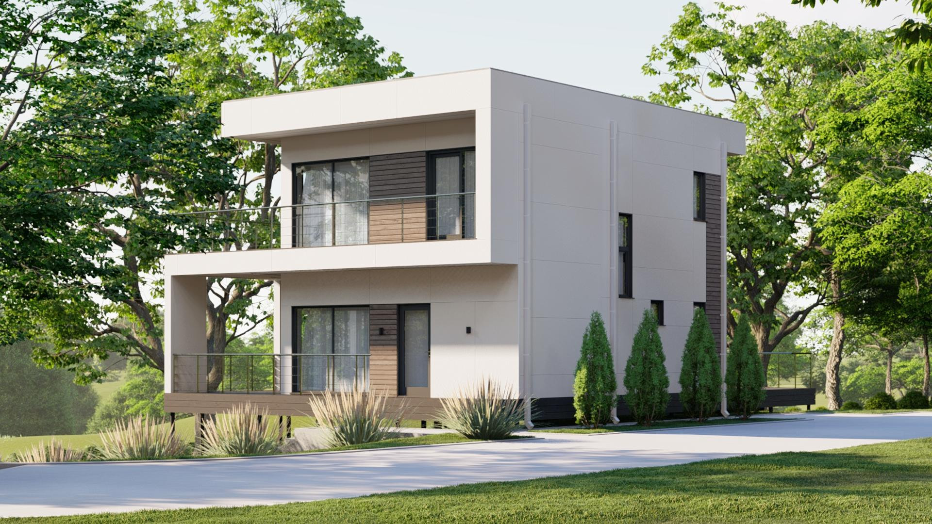 Материалы: Декоративная штукатурка, Планкен, Фасадные термопанели, Фиброцементная плита, Металлический сайдинг (Корея), клинкерный кирпич и многое другое