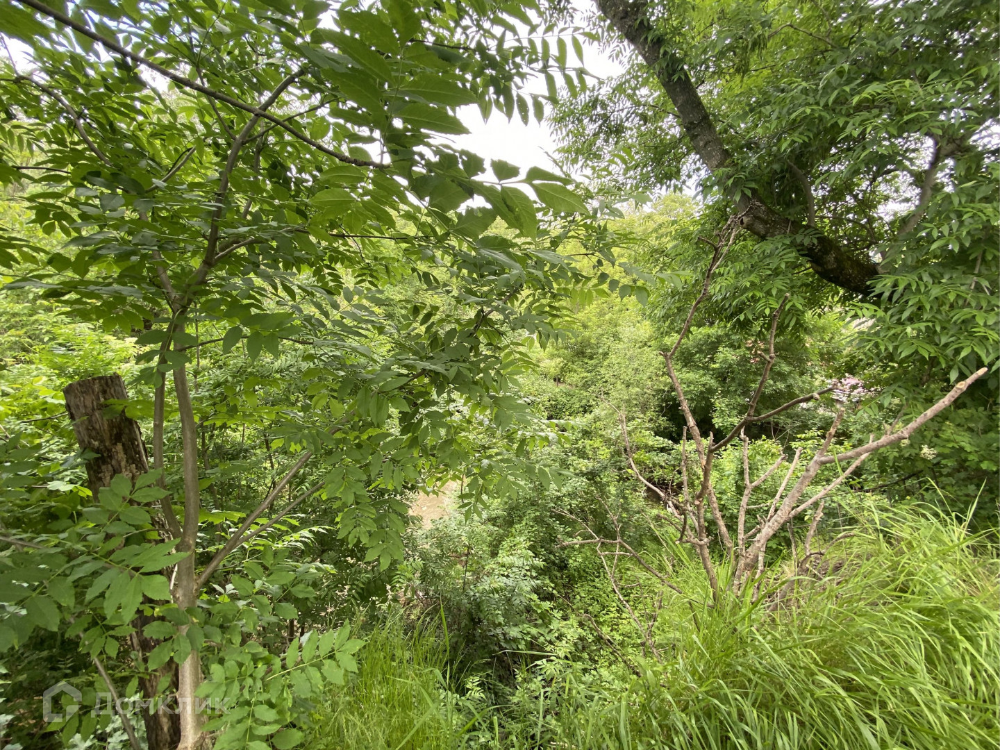 Половина участка ровная, половина с уклоном. Все коммуникации заведены.