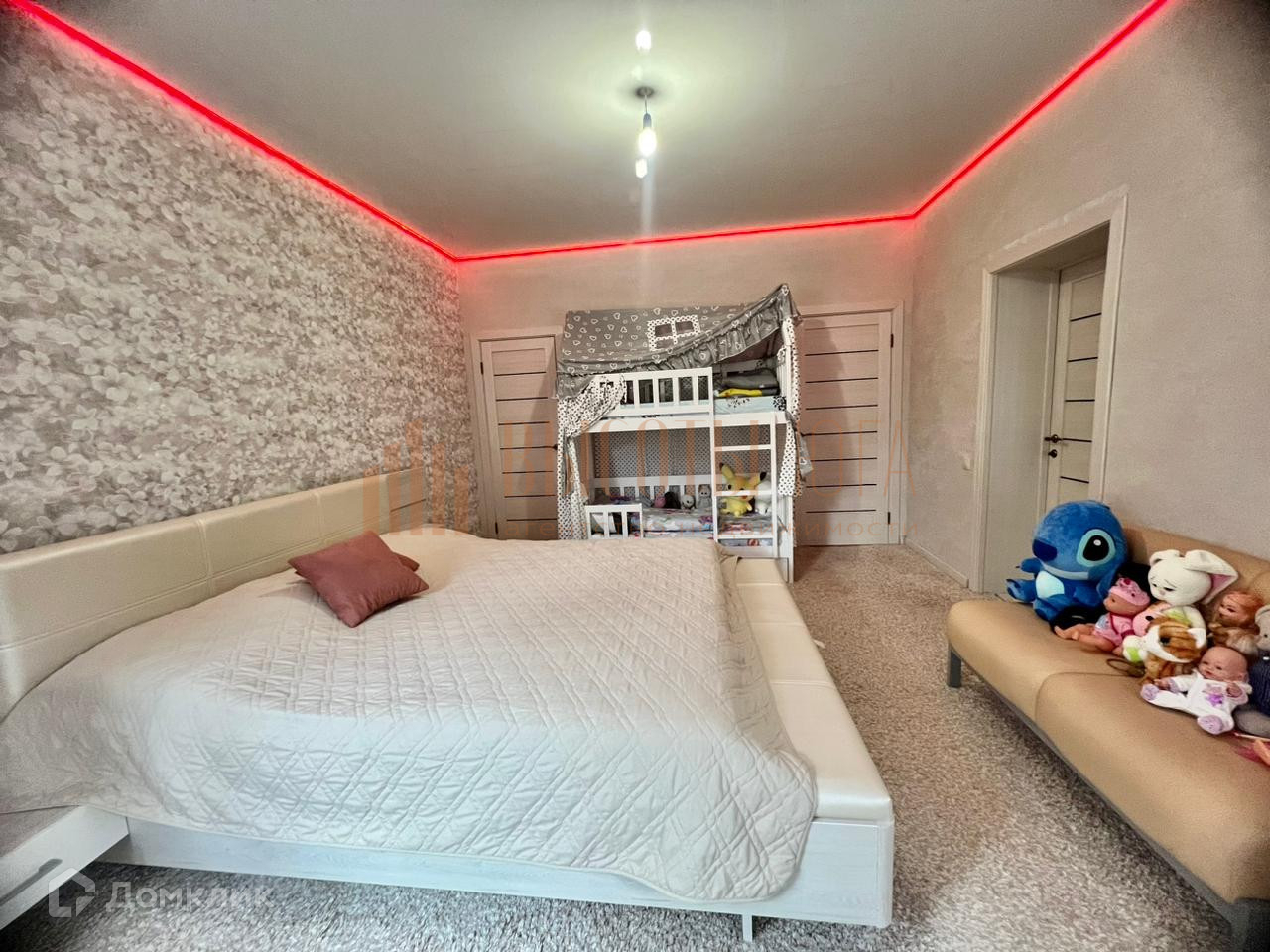 ВТОРОЙ ЭТАЖ: две большие комнаты с качественным ремонтом. В спальне установлен декоративный камин. Большим плюсом служат два дополнительных выхода в гардеробную и дамскую комнату, оборудованную туалетным столиком. Есть гостевая комната, санузел и просторная прачечная комната.