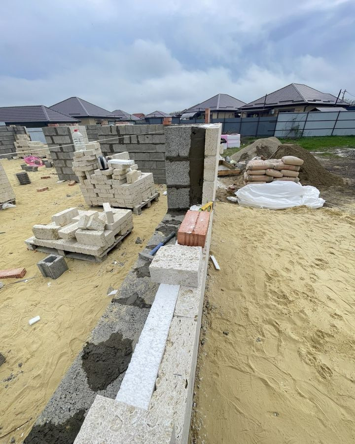 Строительство объектов ведется с соблюдением СНИПов, используются качественные строительные материалы, фундамент ленточный монолитный (армированный) - глубина 100 см, монолитный - армированный цоколь (высота 60 см), стены - шлакоблок, утеплитель - 8 см , облицовка - камень ракушечник, крыша: металлочерепица 05, окна металлопластик - 70 профиль с внешней ламинацией, дверь входная - металлическая.