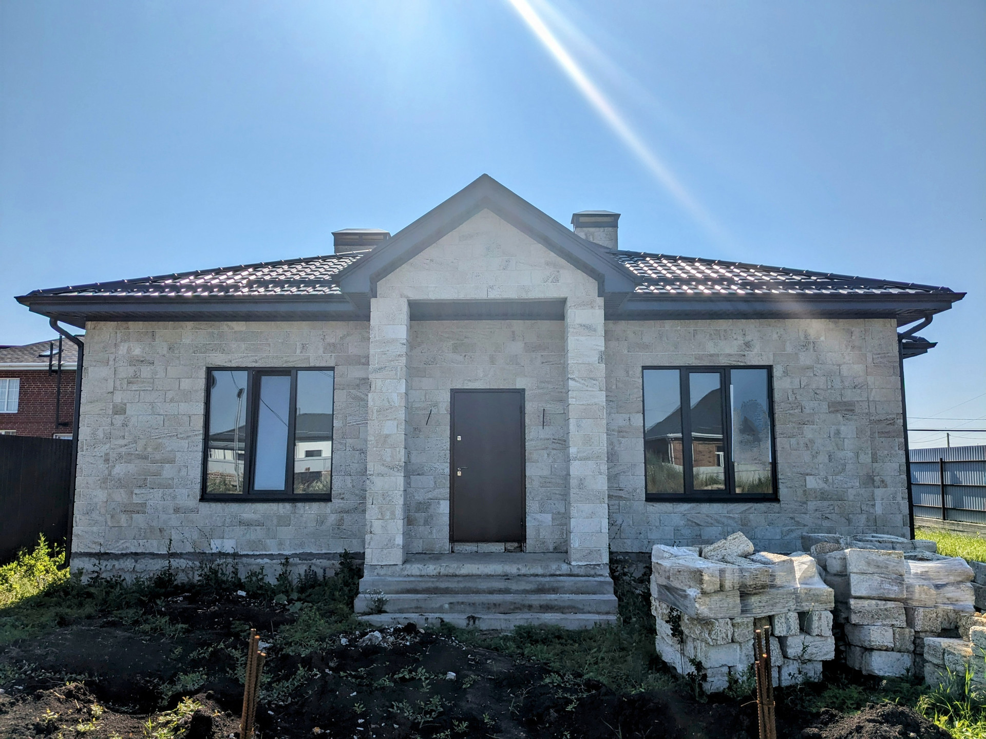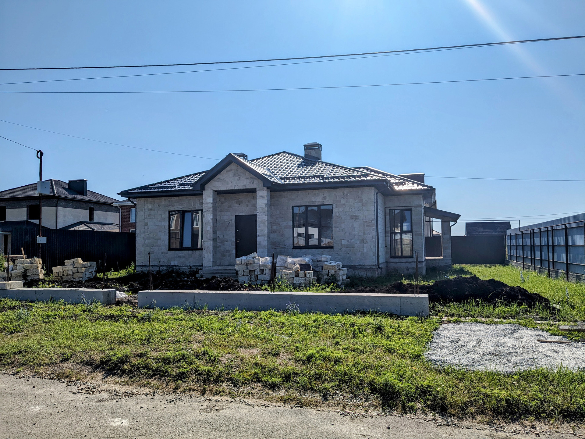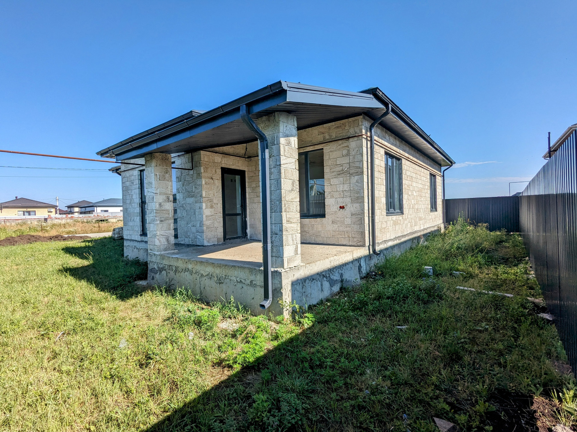 ✅ Ограждение по периметру, по фасаду столбы под ворота и калитку.