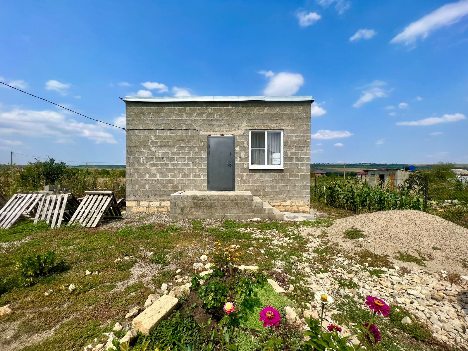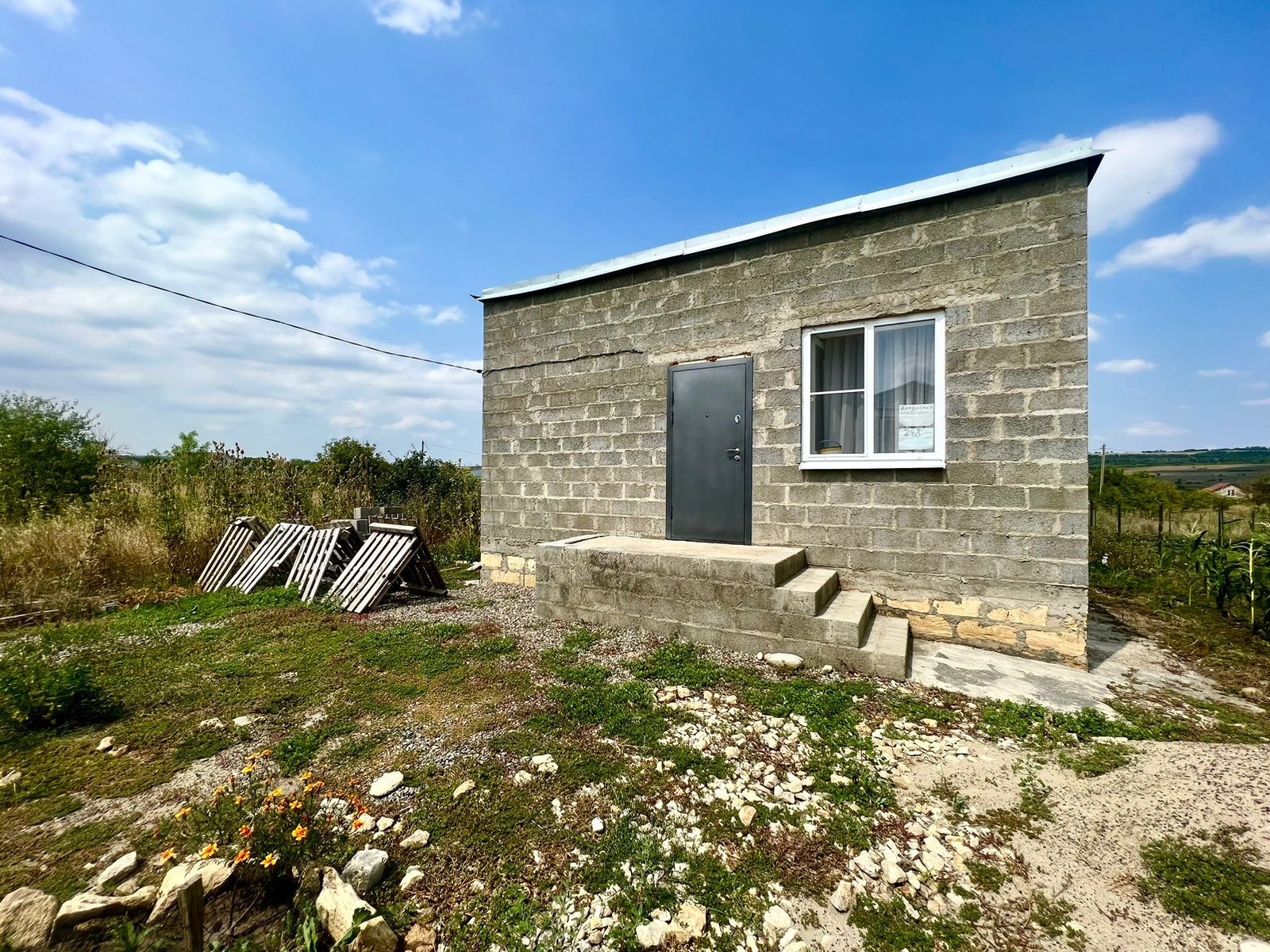 Сарай из шлакоблока, уличный туалет.