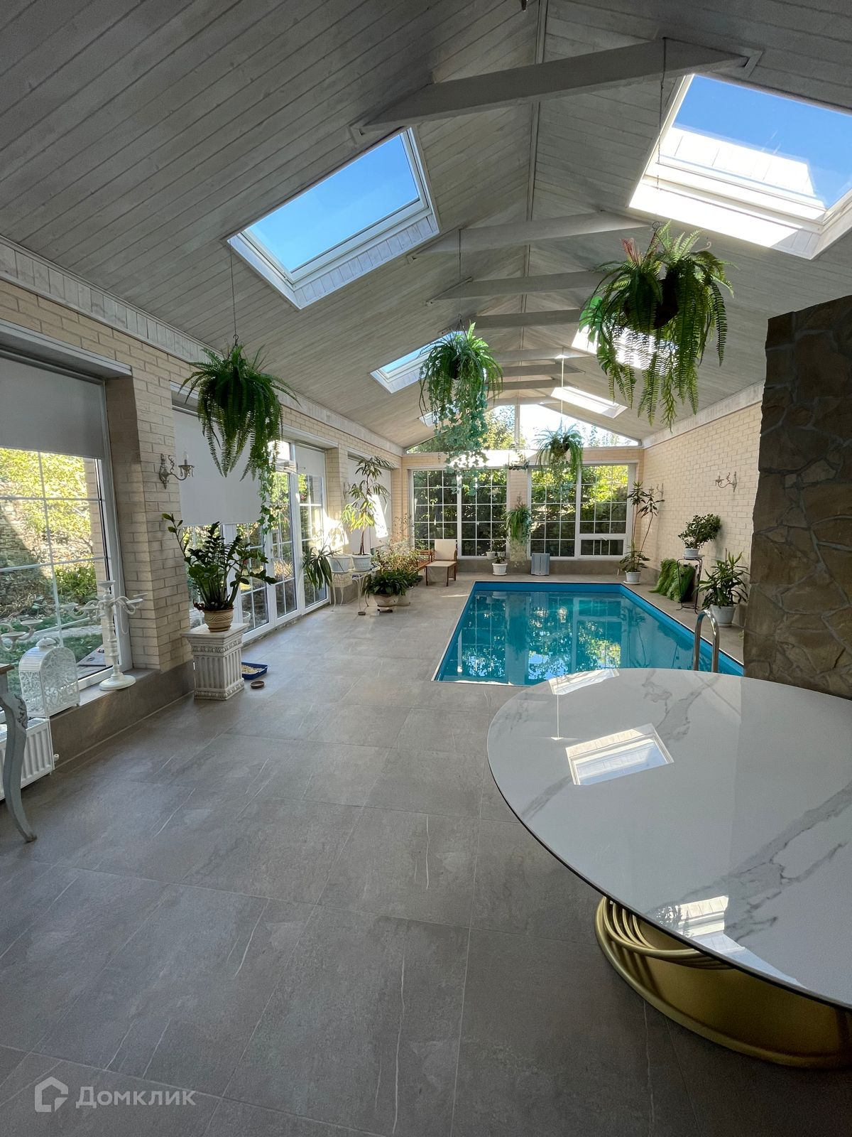 Первый этаж просторная прихожая с гардеробной, и доступ в цокольный этаж, кухня гостиная с выходом на террасу, спальня, кабинет с выходом к бассейну и зоне отдыха.