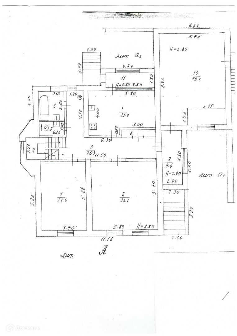 Высота потолков 2.8 м