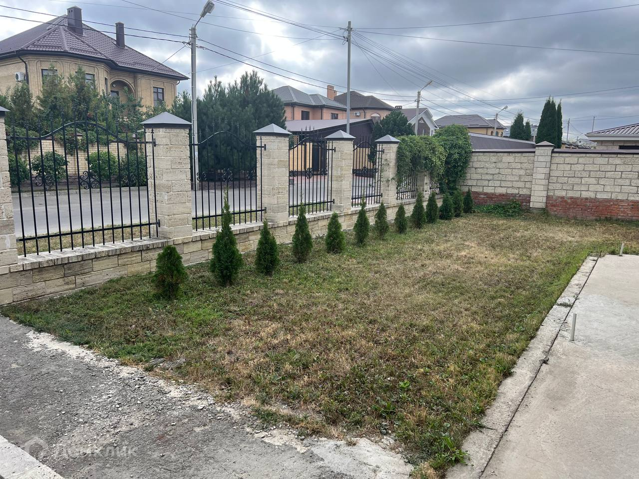 Участок полностью огорожен капитальным забором с кованными элементами.