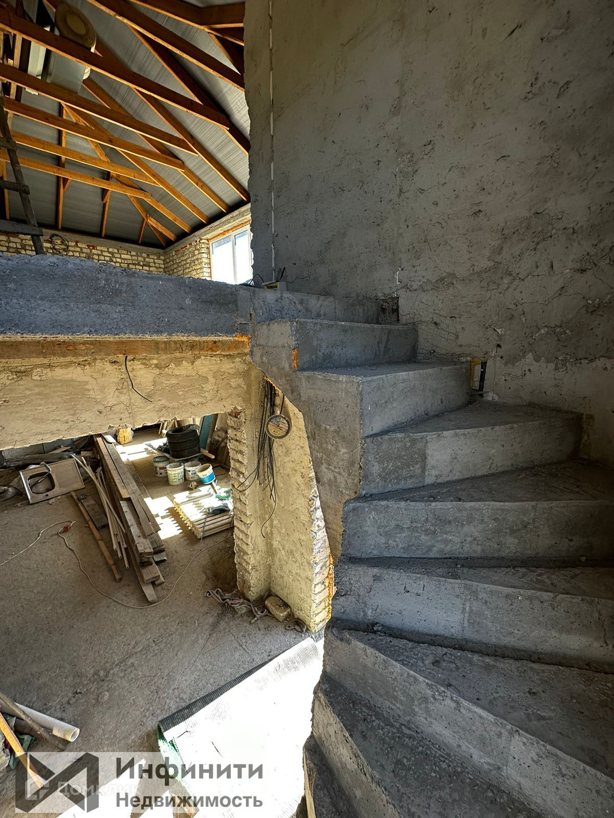 Стяжка, штукатурка, разведена электрика, залита лестница.