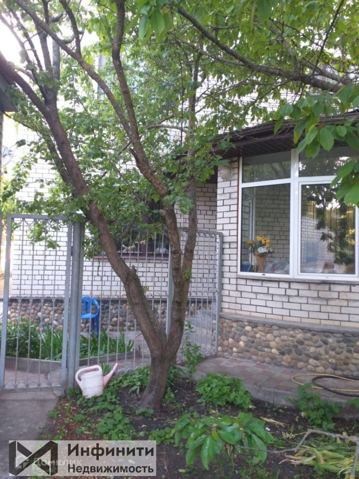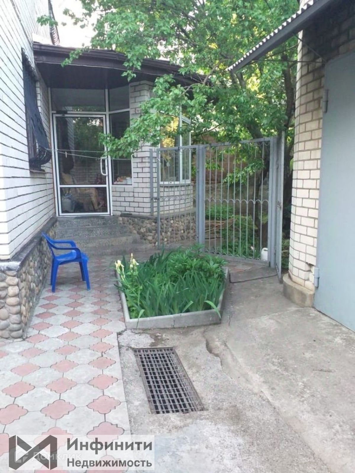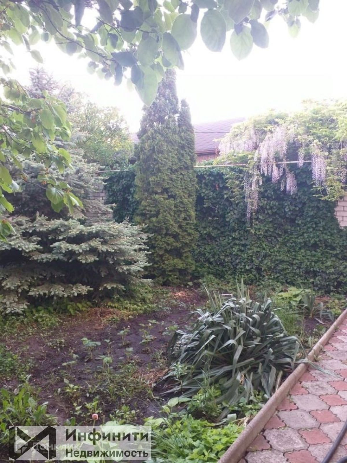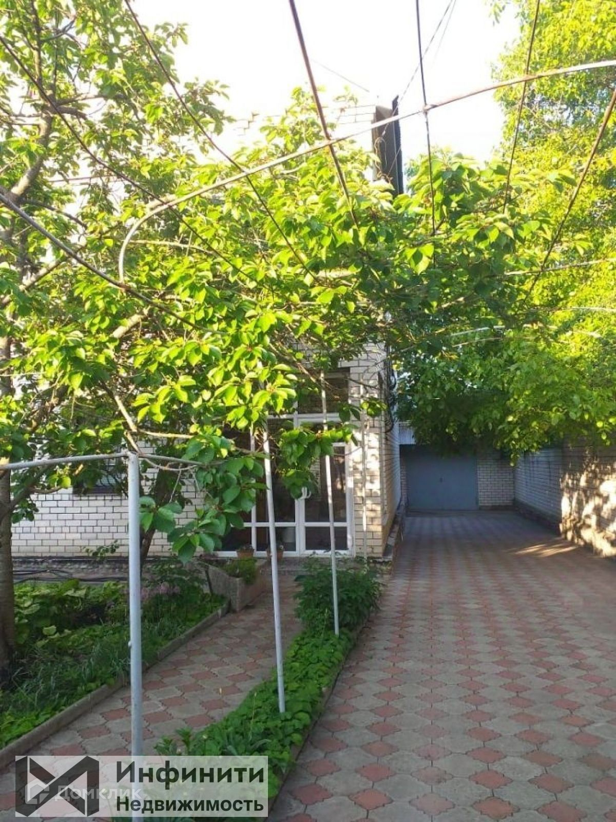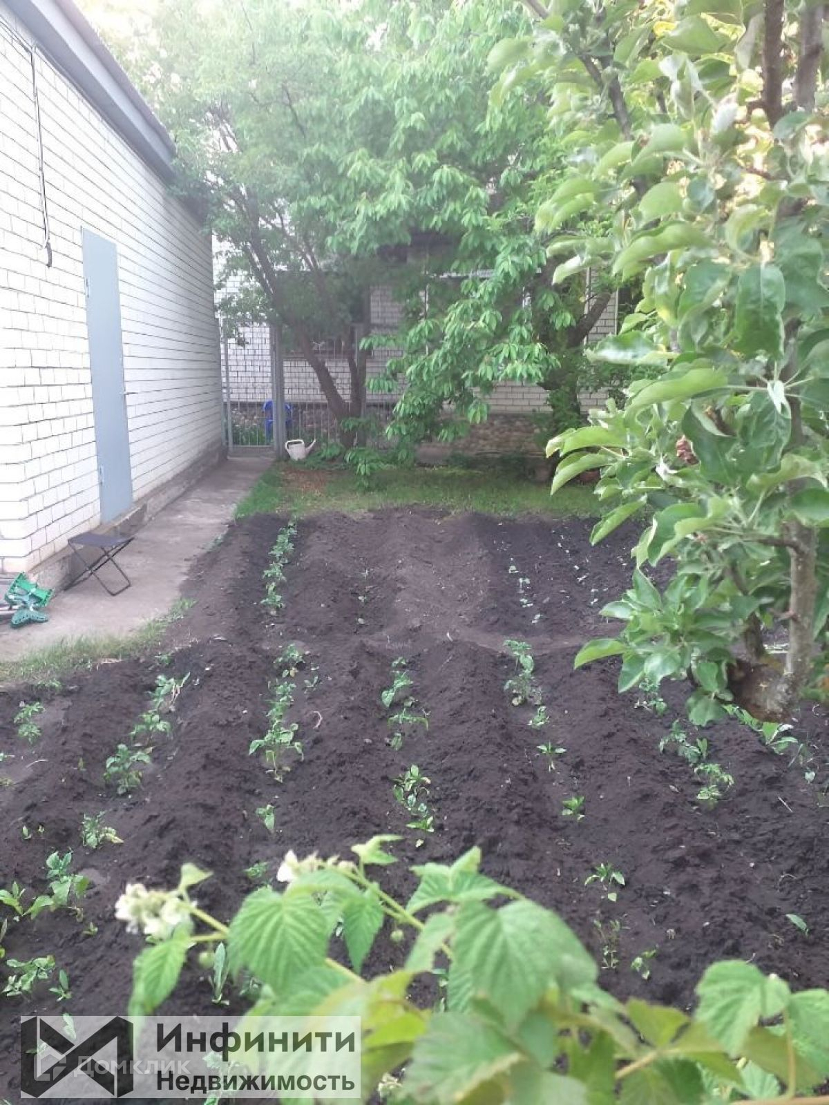 На задней стороне  участка располагаются: сад с фруктовыми деревьями, собственный огород, терраса, гараж.