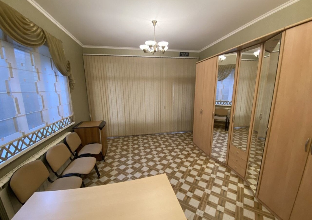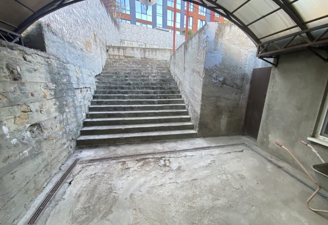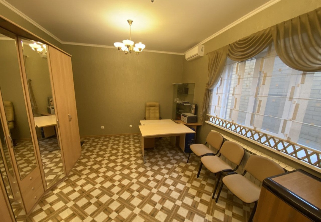 С фасадной стороны есть отдельный вход с тамбуром из стеклопакетов и отдельным офисным помещением 20 кв. м. со своим санузлом., рядом своя парковка. Для офиса, парикмахерской или отдельного «кабинета» очень удобно. Дом кирпичный, толщина стен 55 см.  Фундамент ленточный, армированный несколькими поясами (глубиной до 2метров). Перекрытия -монолит. Потолок - монолит. Крыша - металл(дерева нет)