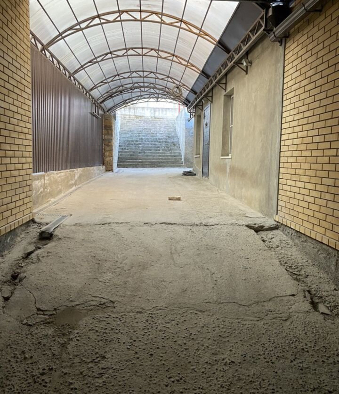 Заезд во двор. Ворота автоматические Herman. Двор под навесом на 3 машины.