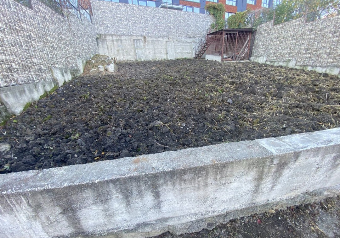 Двор огорожен по периметру мною забором в 3 метра.