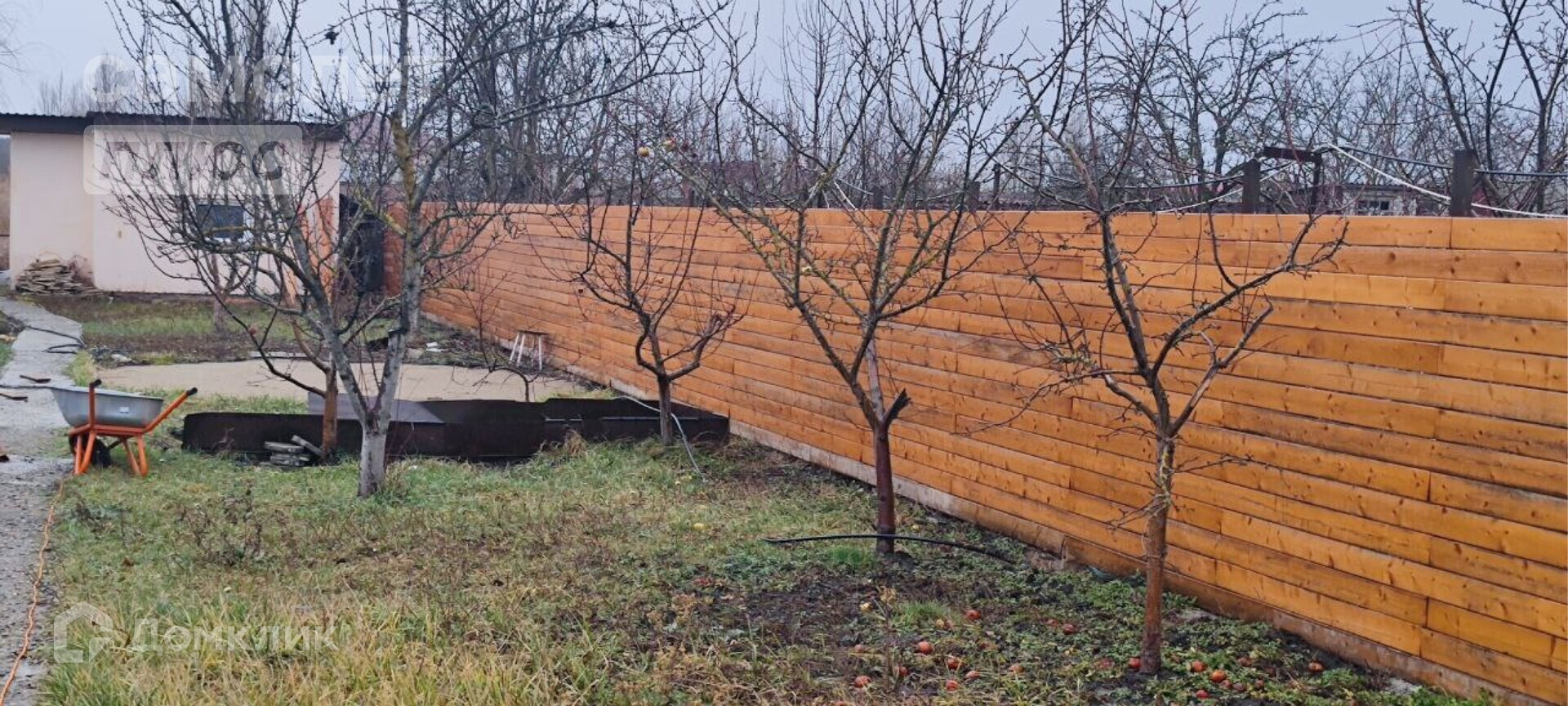 Ворота автоматические, вдоль участка более 100 метров забора из лиственницы.