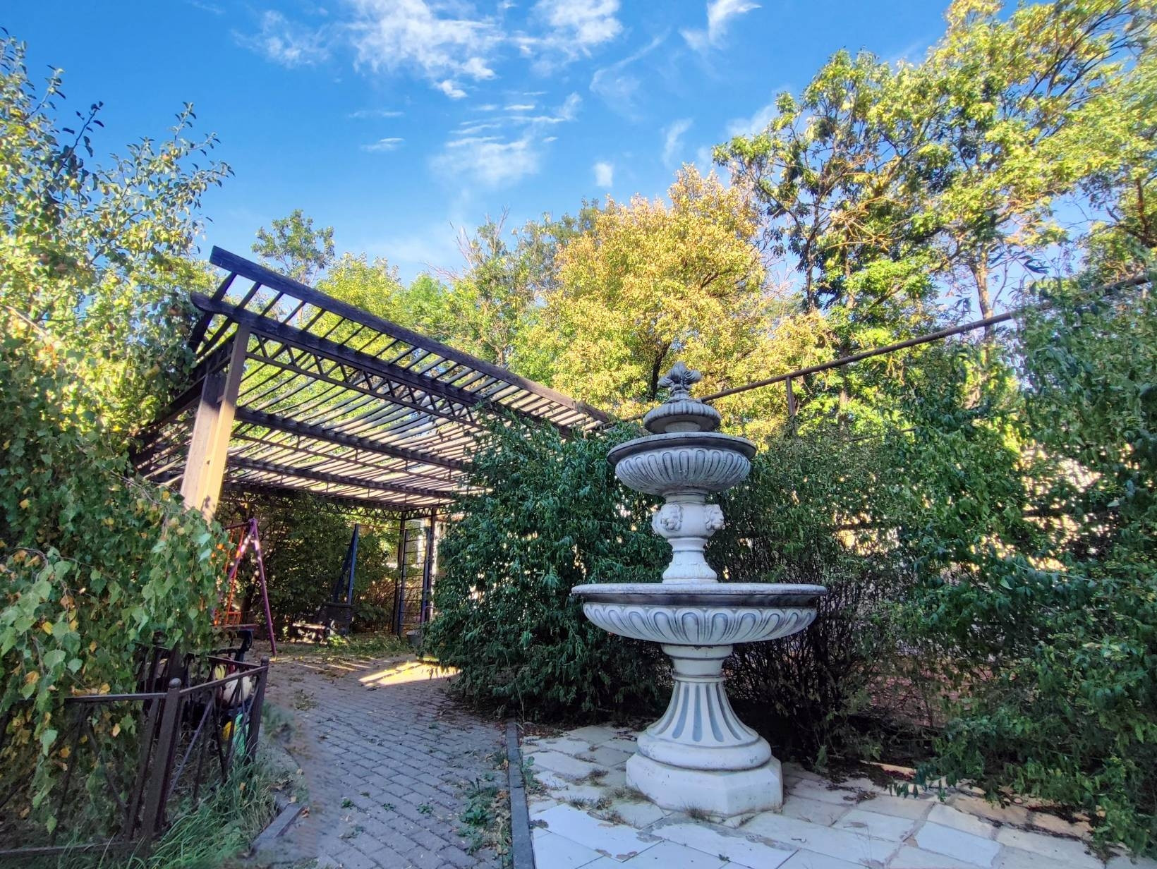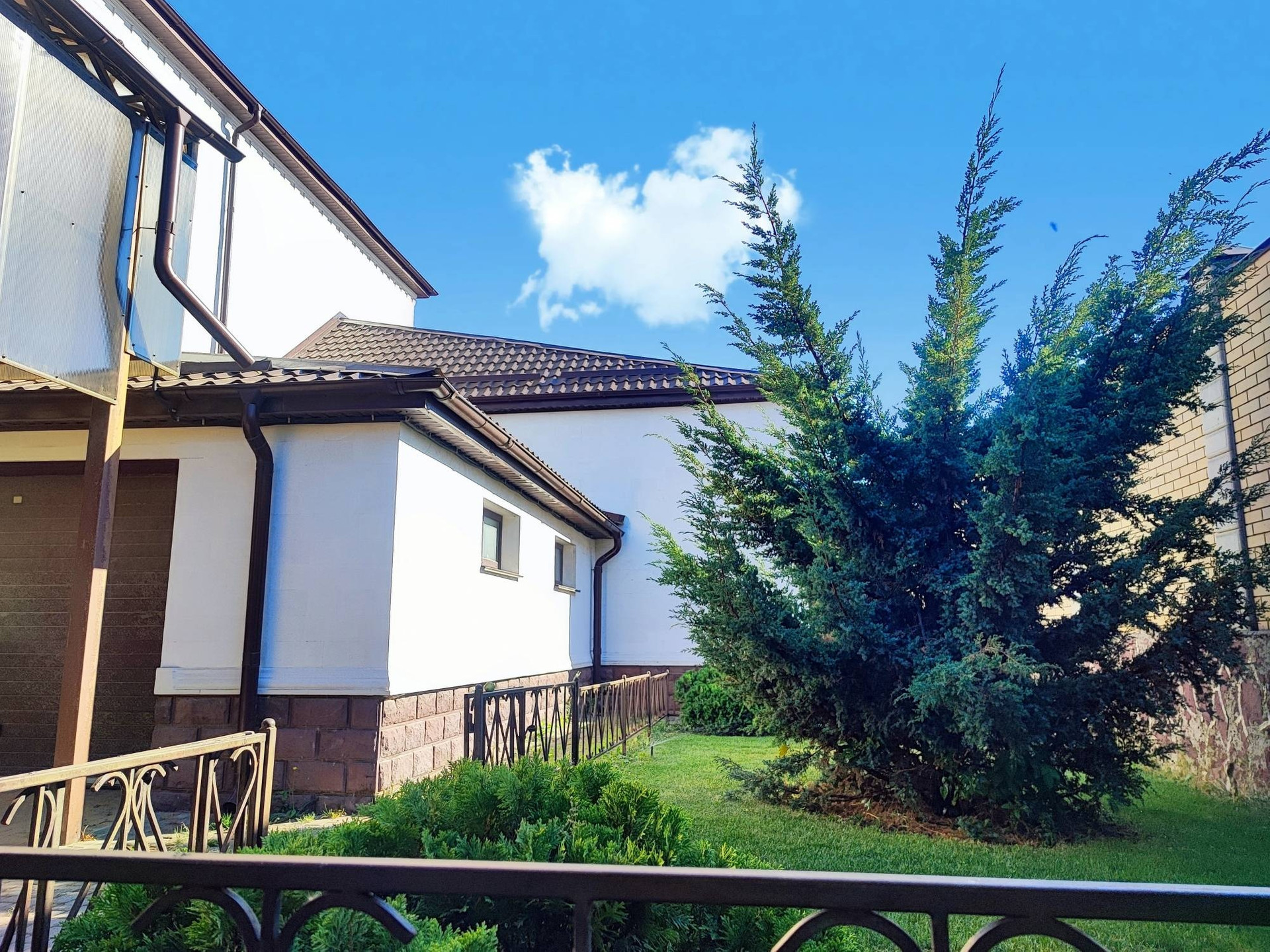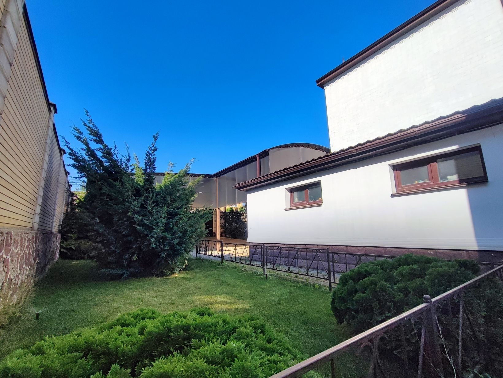 Сам участок включает в себя зону отдыха с беседками мраморным фонтаном, детской площадкой (лаунж-зона, выход в лес), спортивной площадкой (для большого тенниса, волейбола, баскетбола, мини футбола и т.п.), сад с декоративными, экзотическими (можжевельник - бонсай, японская вишня) и фруктовыми деревьями. Два вольера для собак. Имеется авто полив всего участка с насаждениями.