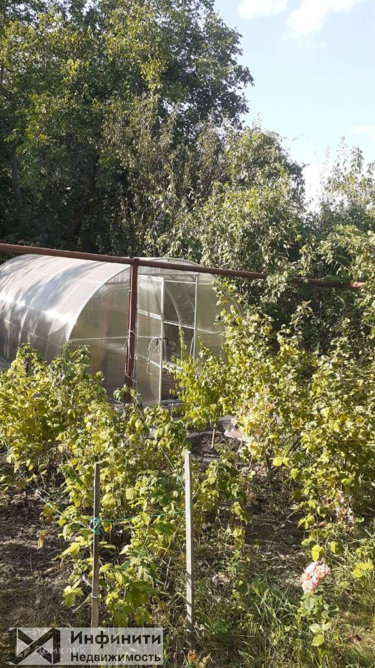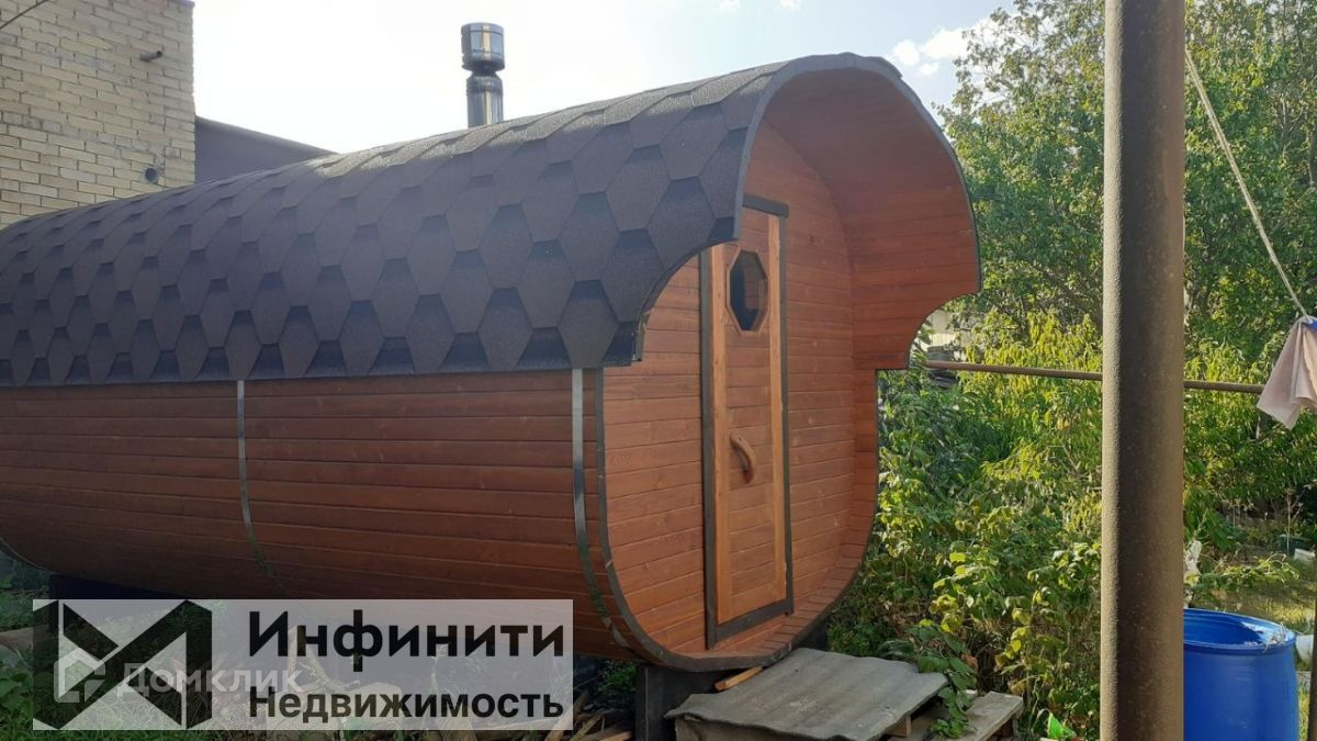 На участке сад с молодыми фруктовыми деревьями, баня-бочка, теплица. Имеется времена, с отдельным входом, двором, все коммуникации, счётчики на свет, газ, воду, пригодна для проживания.Номер объекта: #150/551499/15503