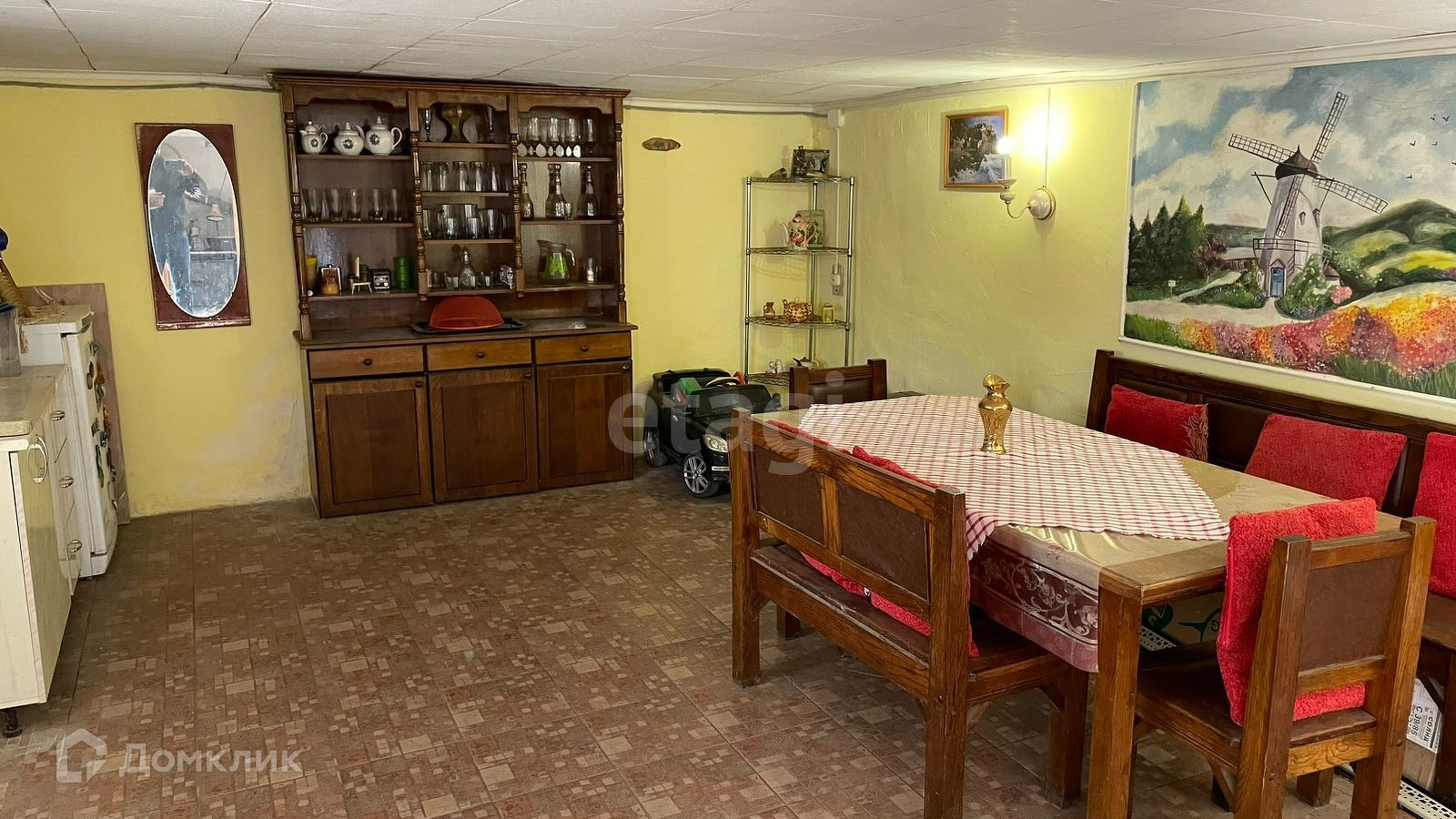 На нулевом этаже большая комната отдыха- столовая и мастерская.
