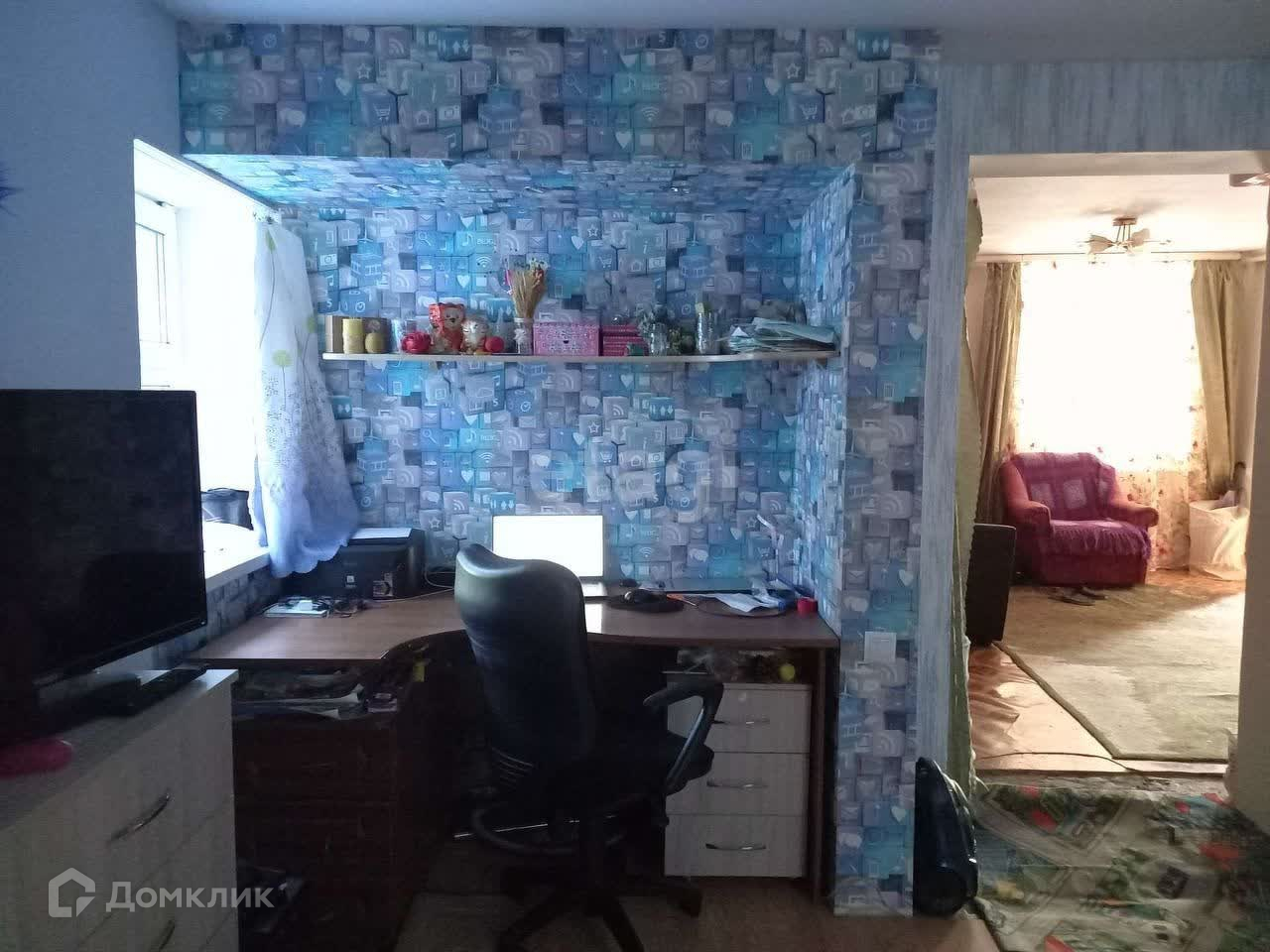 2 смежные комнаты (19 и 13м2),санузел совмещен. Газо-печное отопление, центральная вода, канализация, электроводонагреватель, канализационный насос.