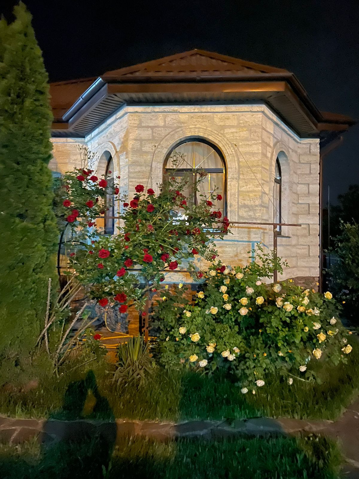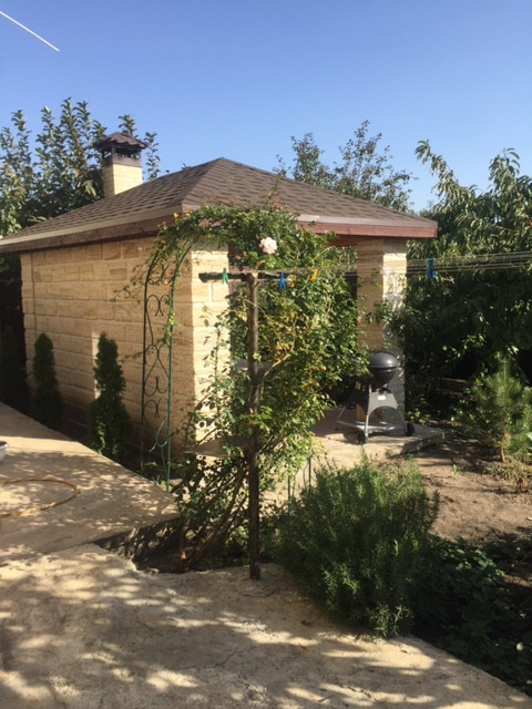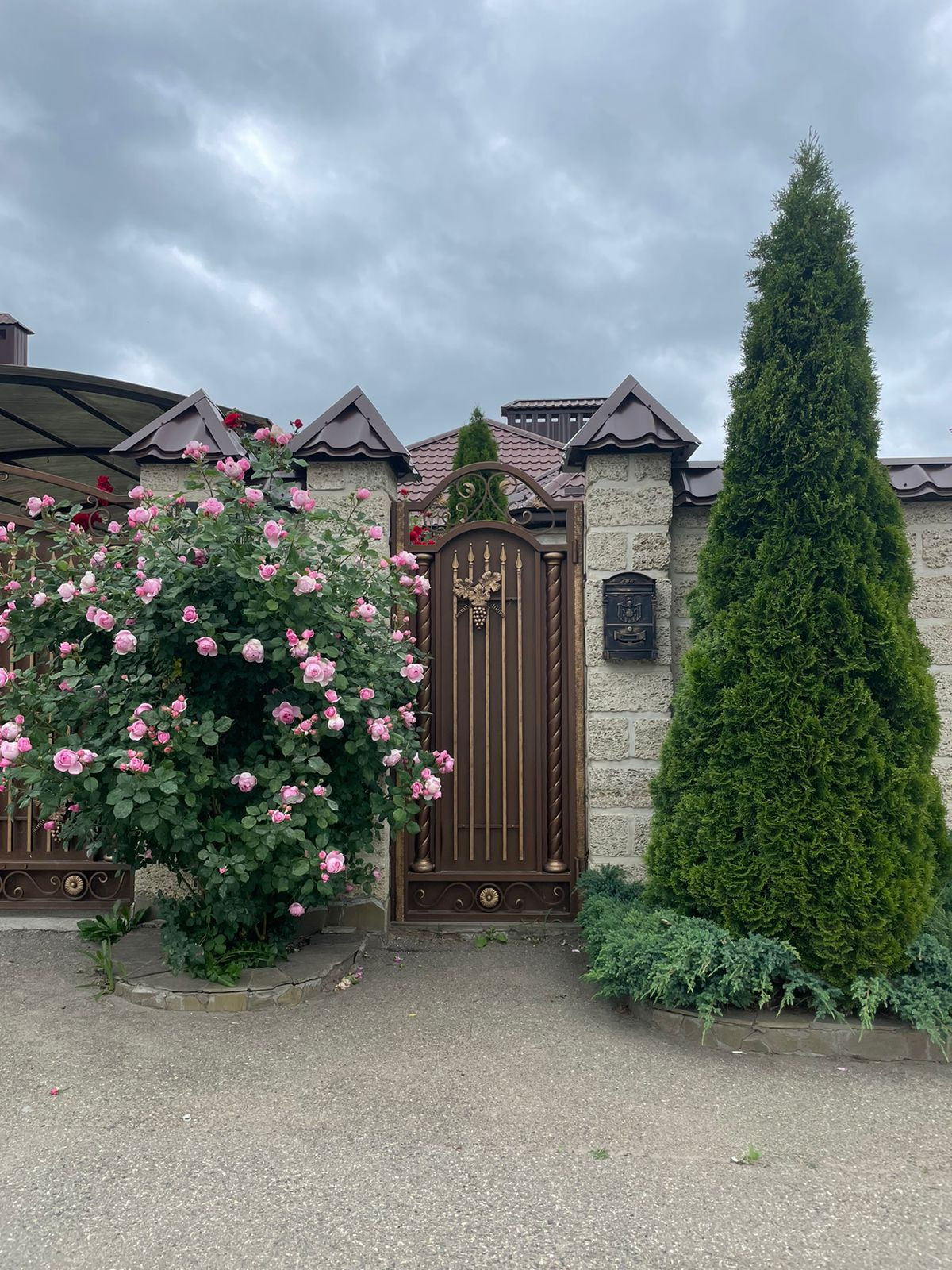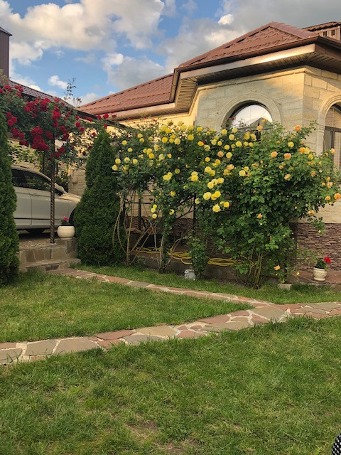 Сад с фруктовыми деревьями, розарий. Навес и беседка с мангалом, автоматические ворота.