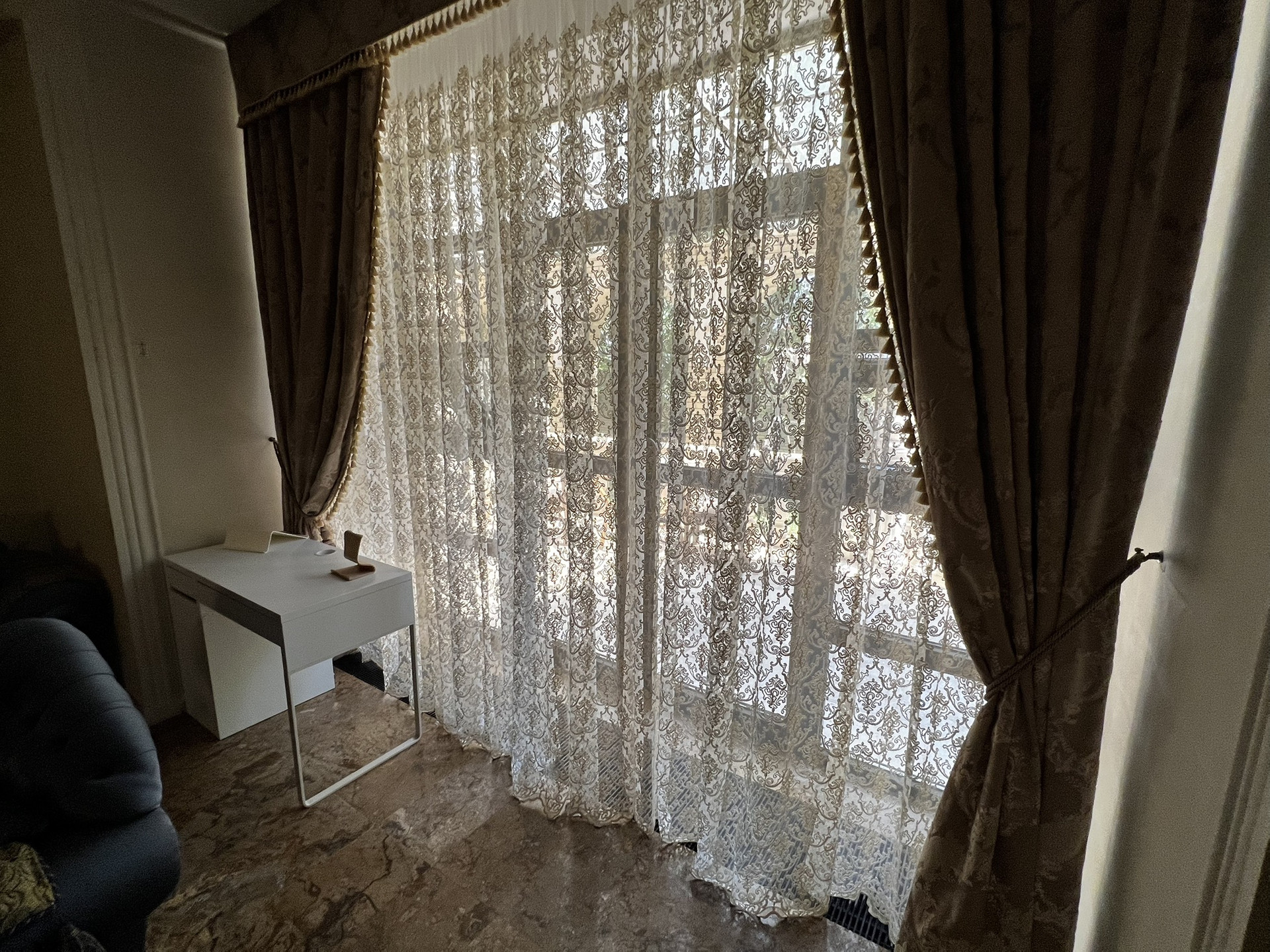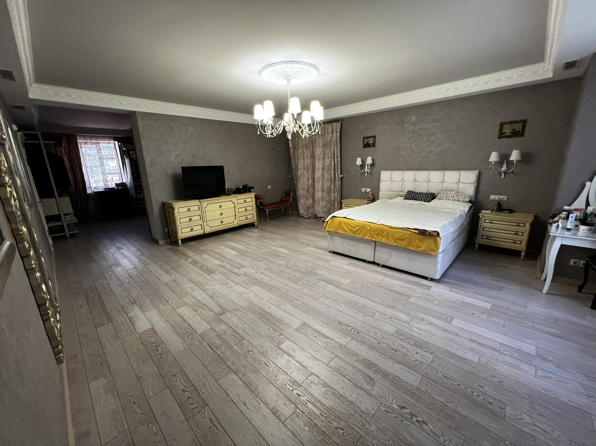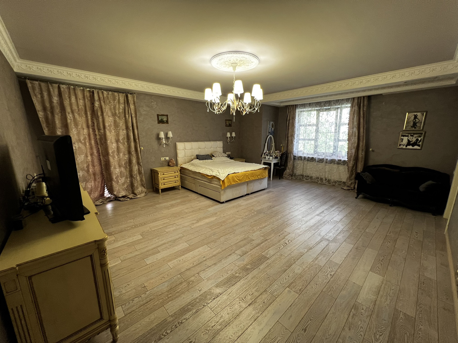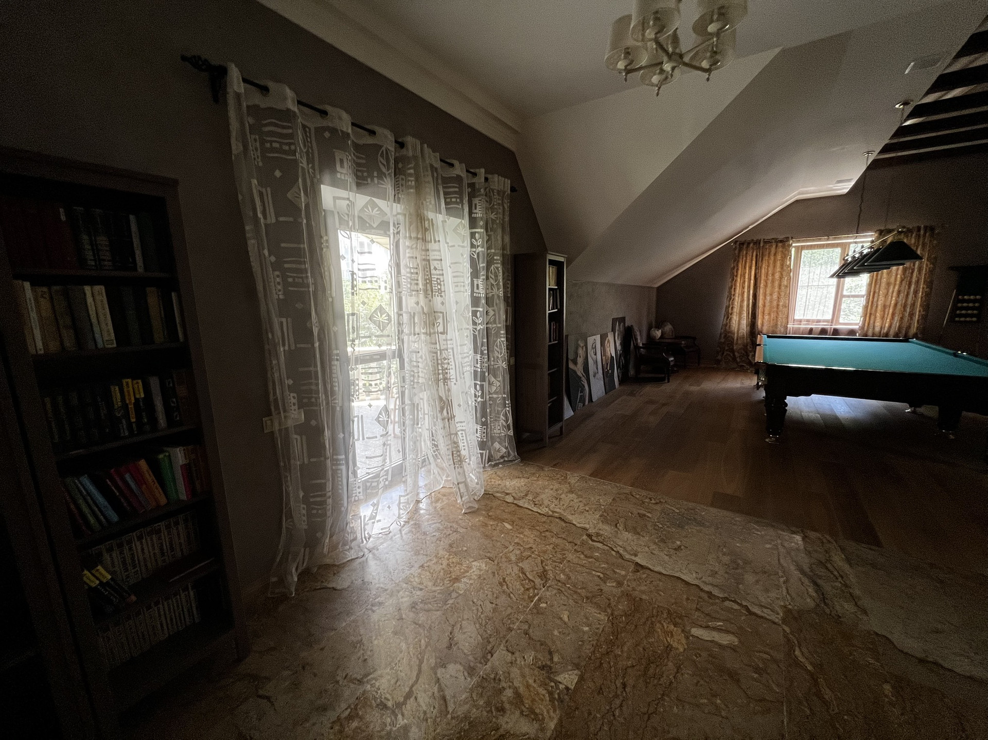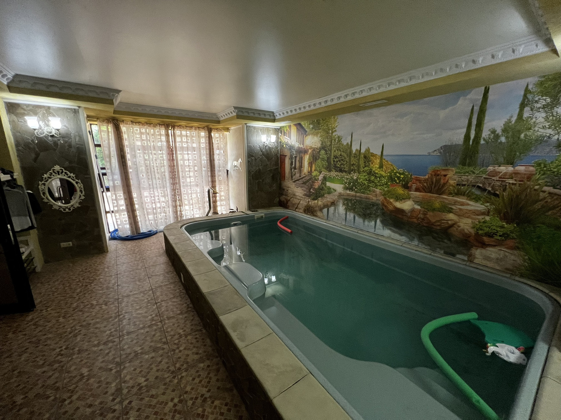 Центральным парком культуры и отдыха. Очень удобное расположение. Можно в центре ходить пешком. Сад, 2 летних веранды, мангал, лифт, камин, бассейн, сауна. 5 с/у, 2 зала, алюминиевые анодированные двухкамерные окна произ-ва Турция, Сантехника villeroy&boch, в том числе джакузи. Полностью мебелирован. Мебель производства Италии.