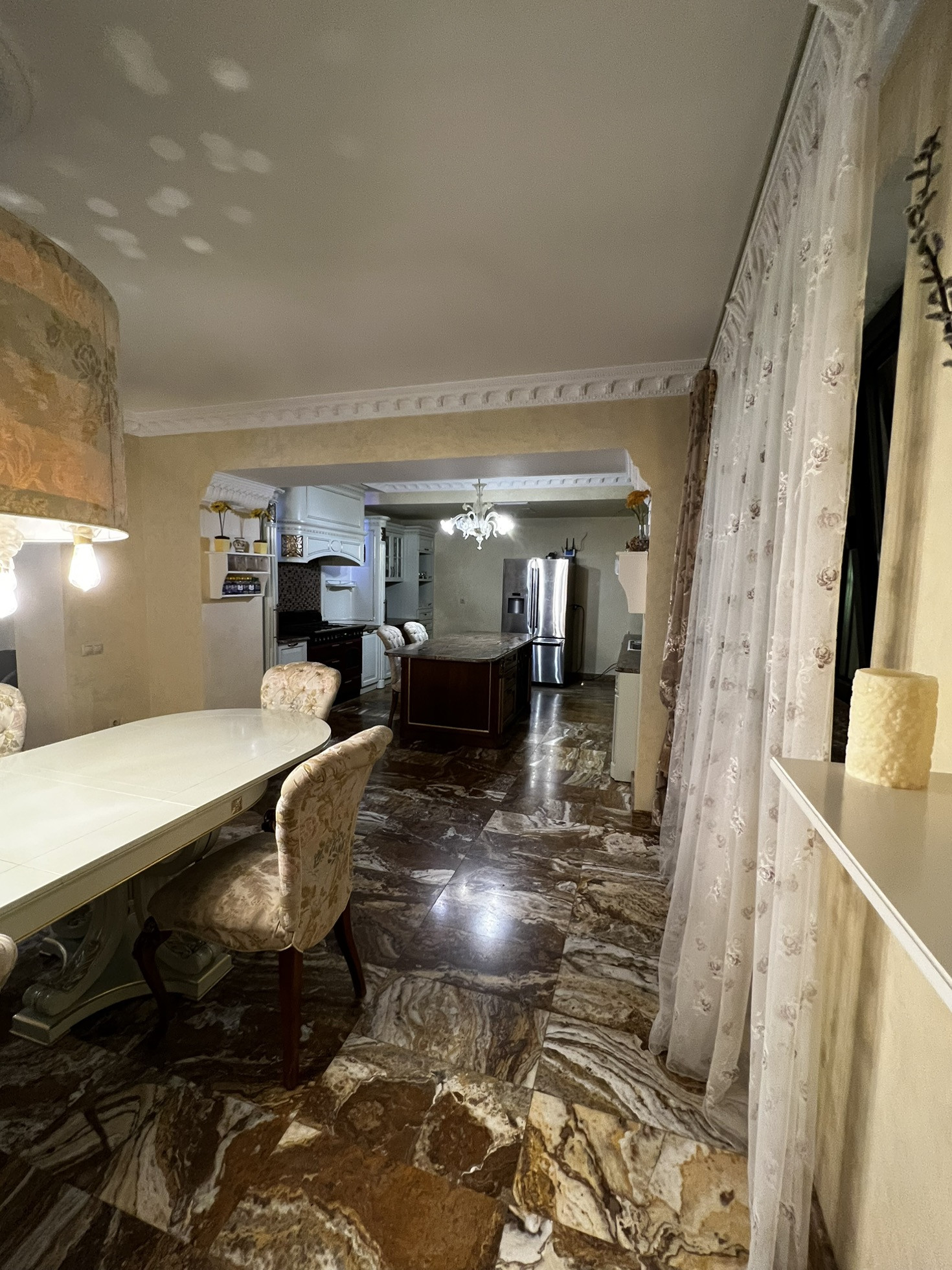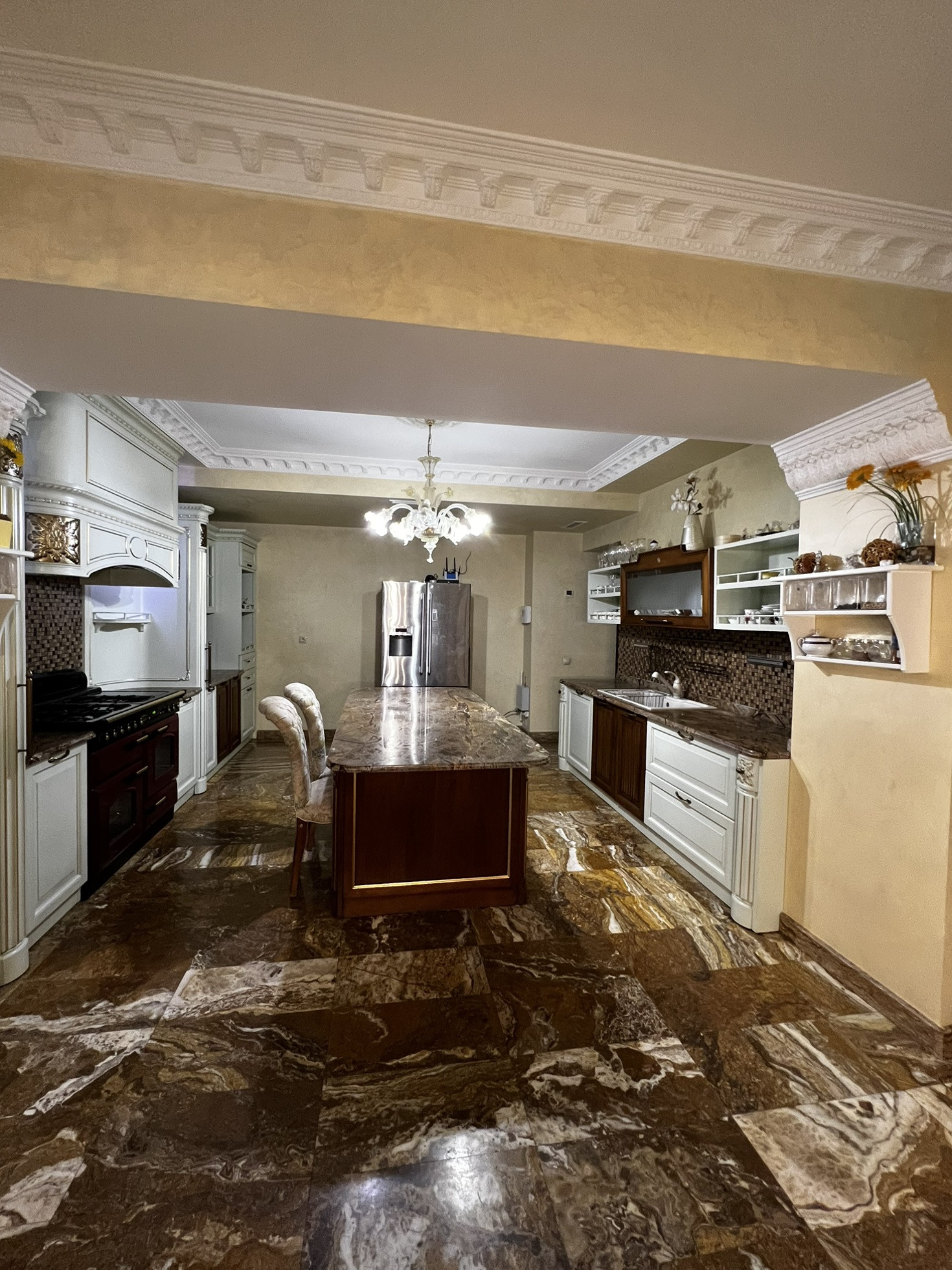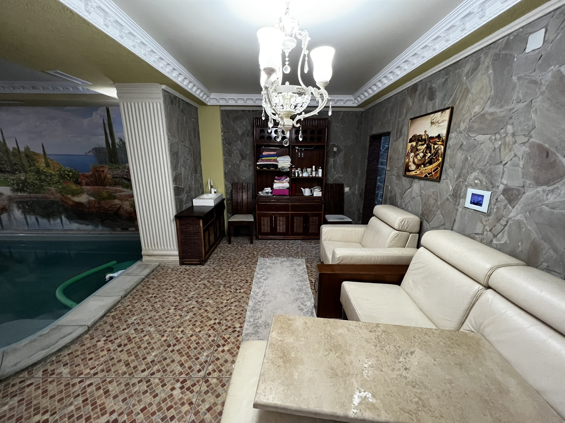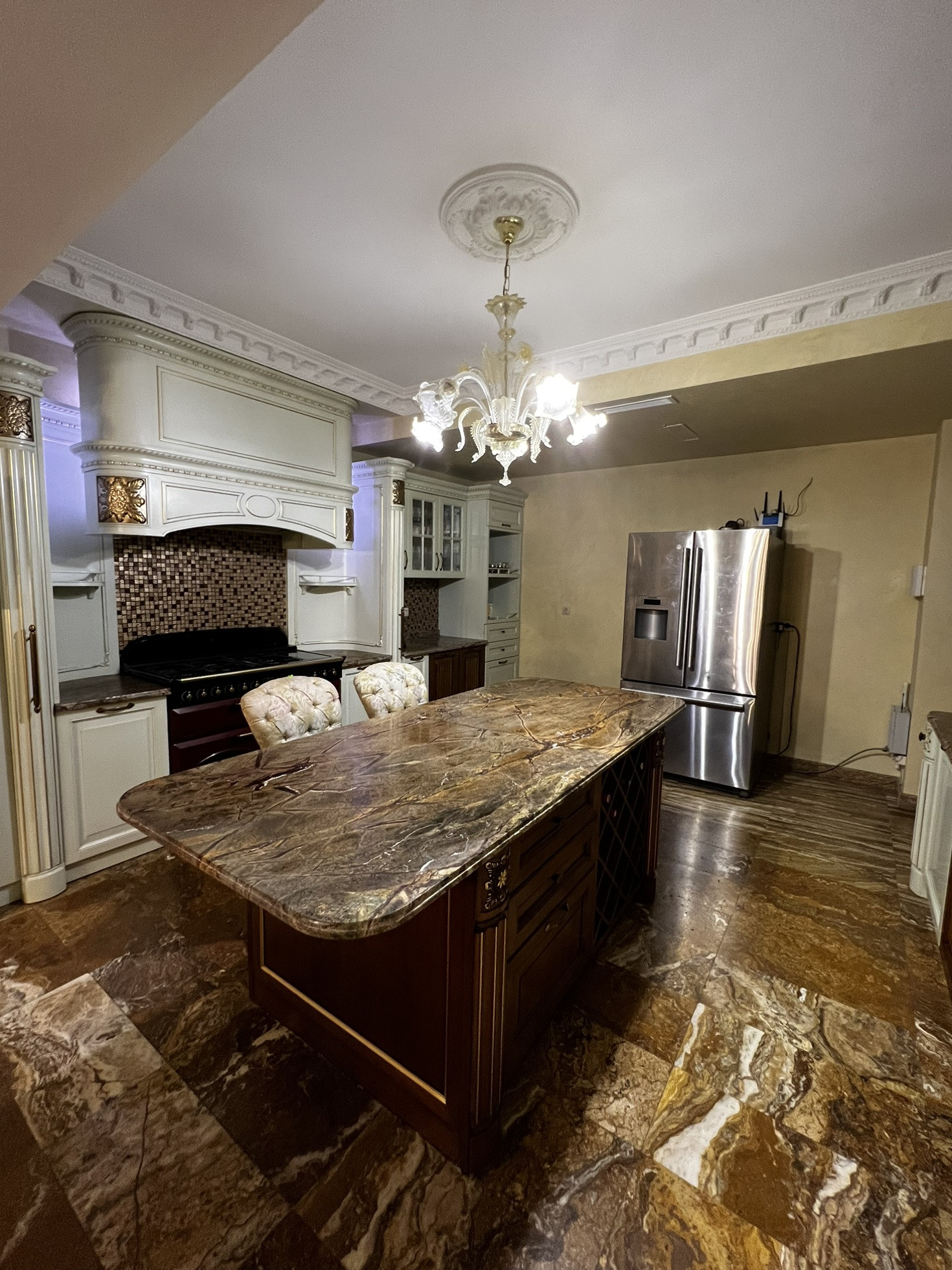 Лифт итальянский Отис на 5-6 человек. Камин французский с лифтом. Зона барбекю полностью оборудована. Двор выложен гранитом. Имеется волейбольная площадка, спортивная, теннисный стол, батут. Кухня Мартини (Италия). Полы из травертина с ониксом и массива паркетной доски. приточно-вытяжная вентиляция проведена в доме. Гараж на з машины. Комната караоке и 2 комнаты для хранения продуктов. Русский бильярд.